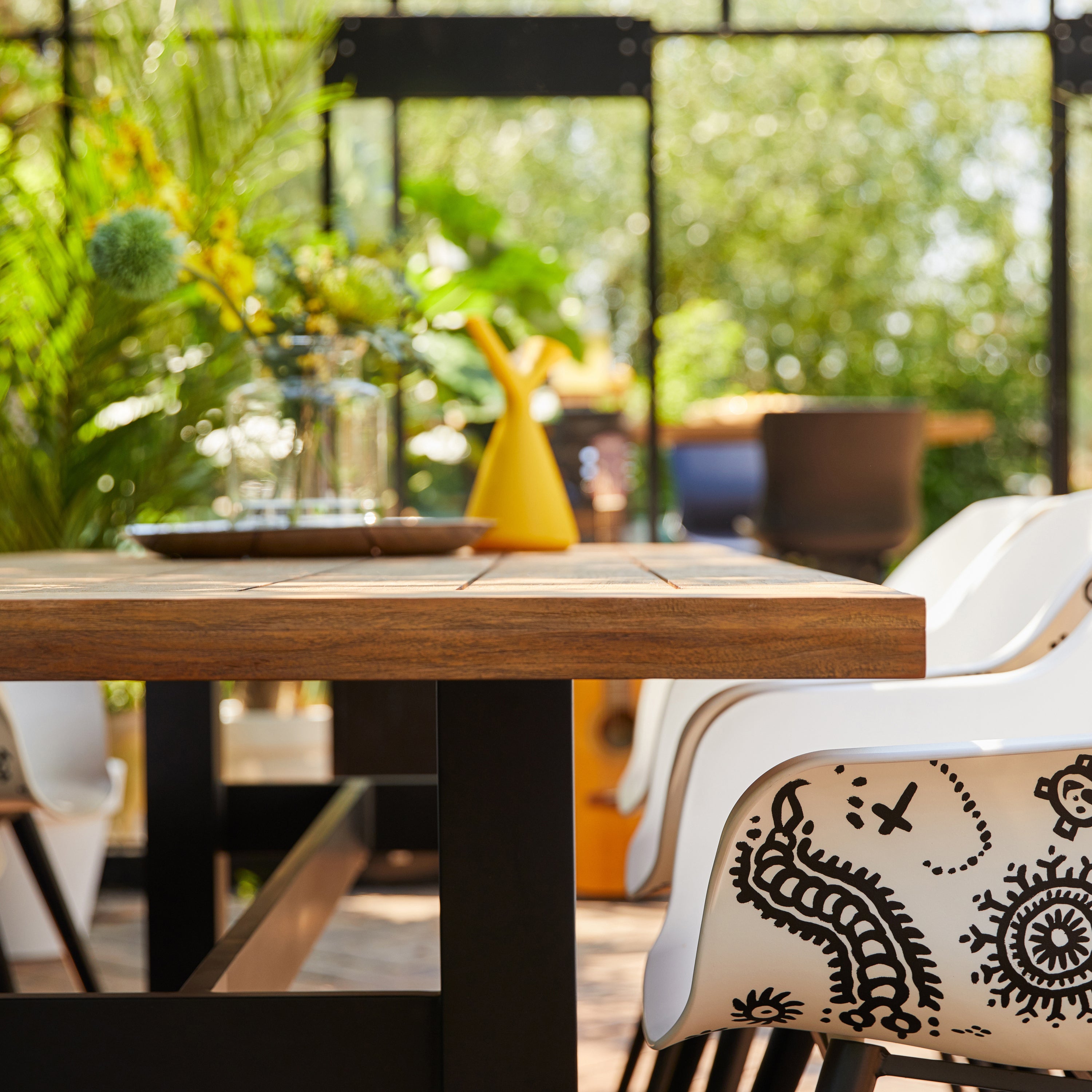 - Mooi, dat doorleefde karakter van het teakhouten blad