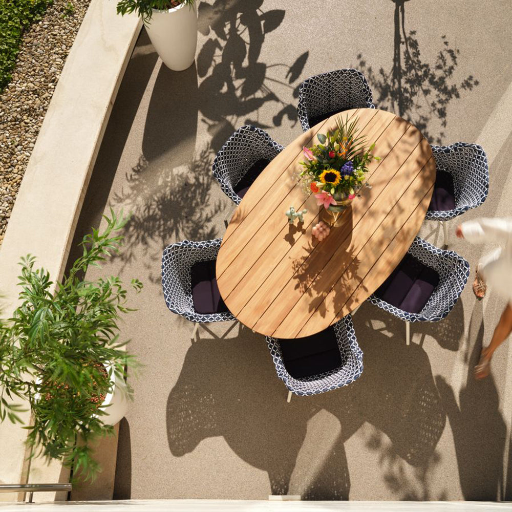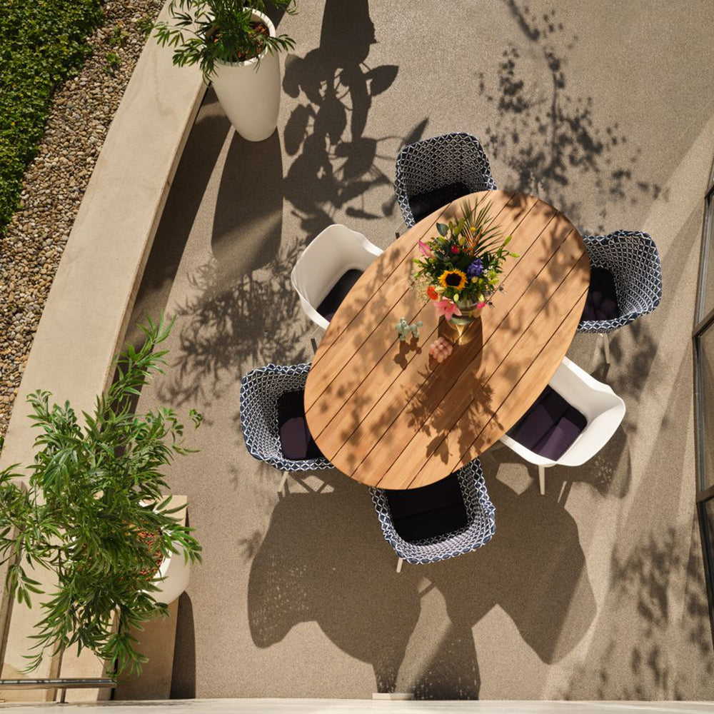 - Materiaal tafelblad: teakhout naturel