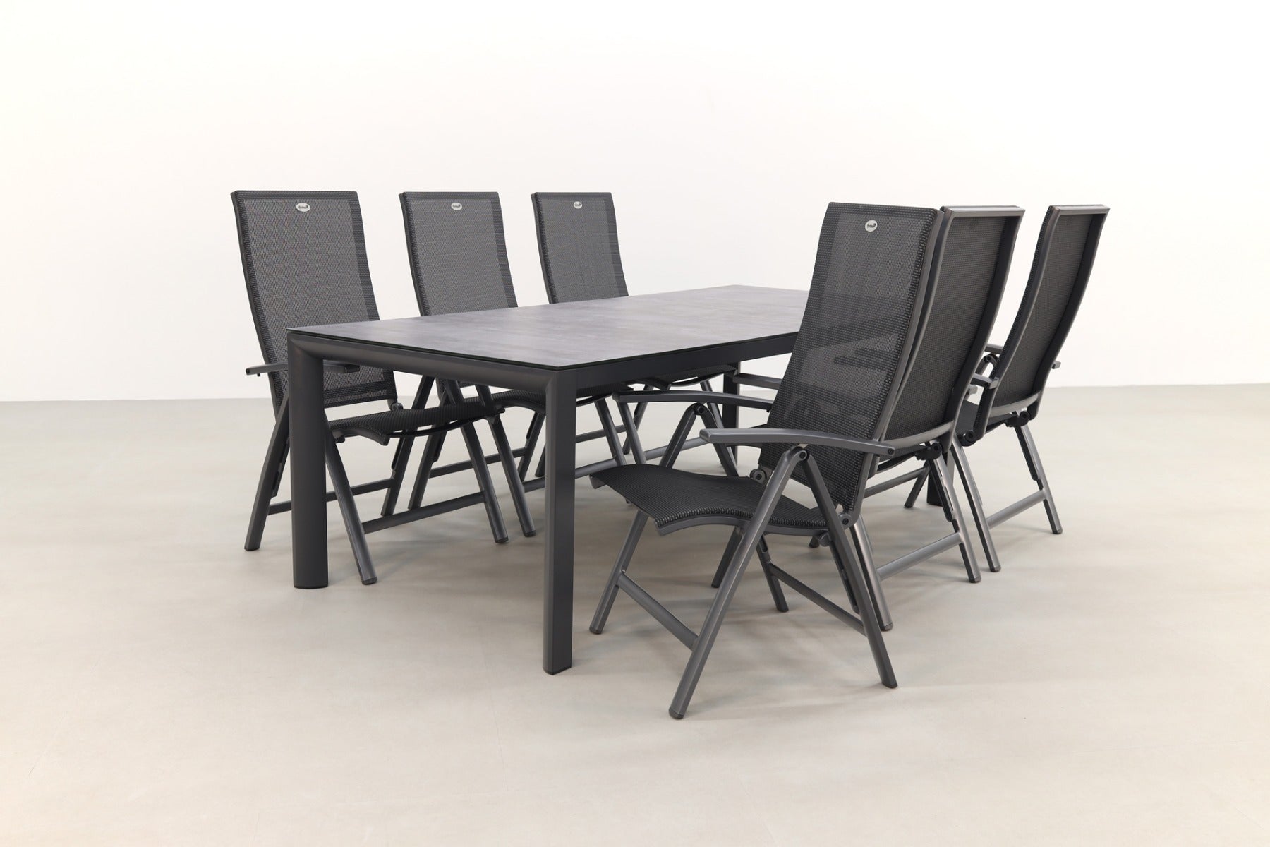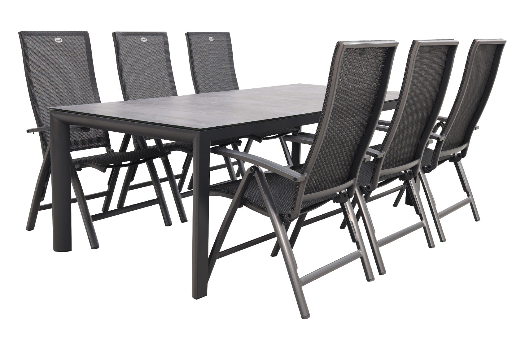 6x Hartman Valentino verstelbare tuinstoel 1x Baltimor tuintafel 220 x 100 cm.