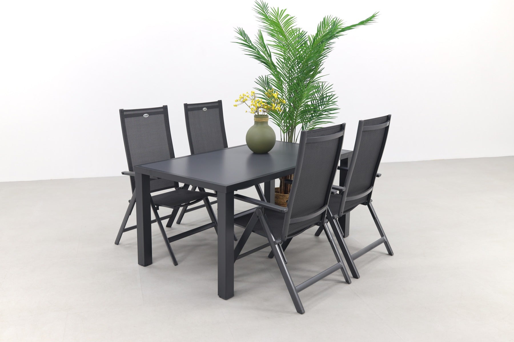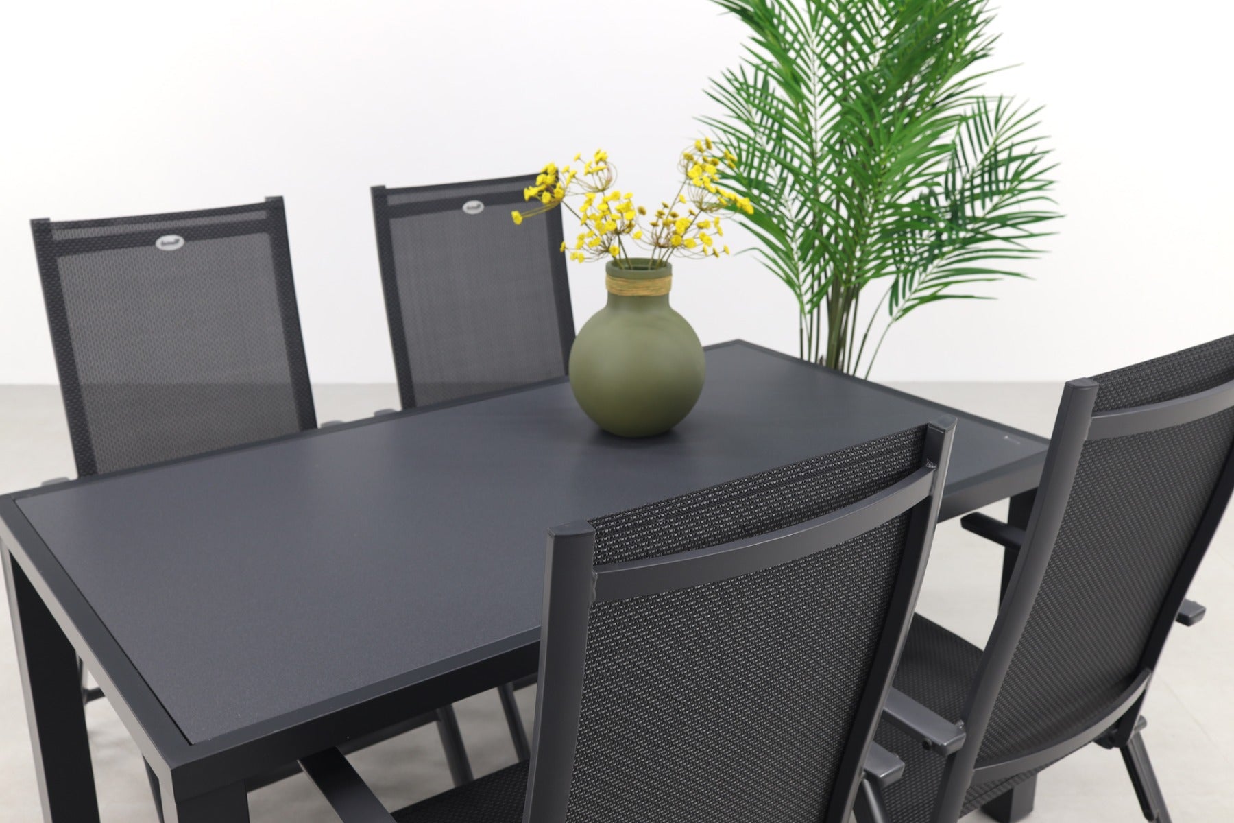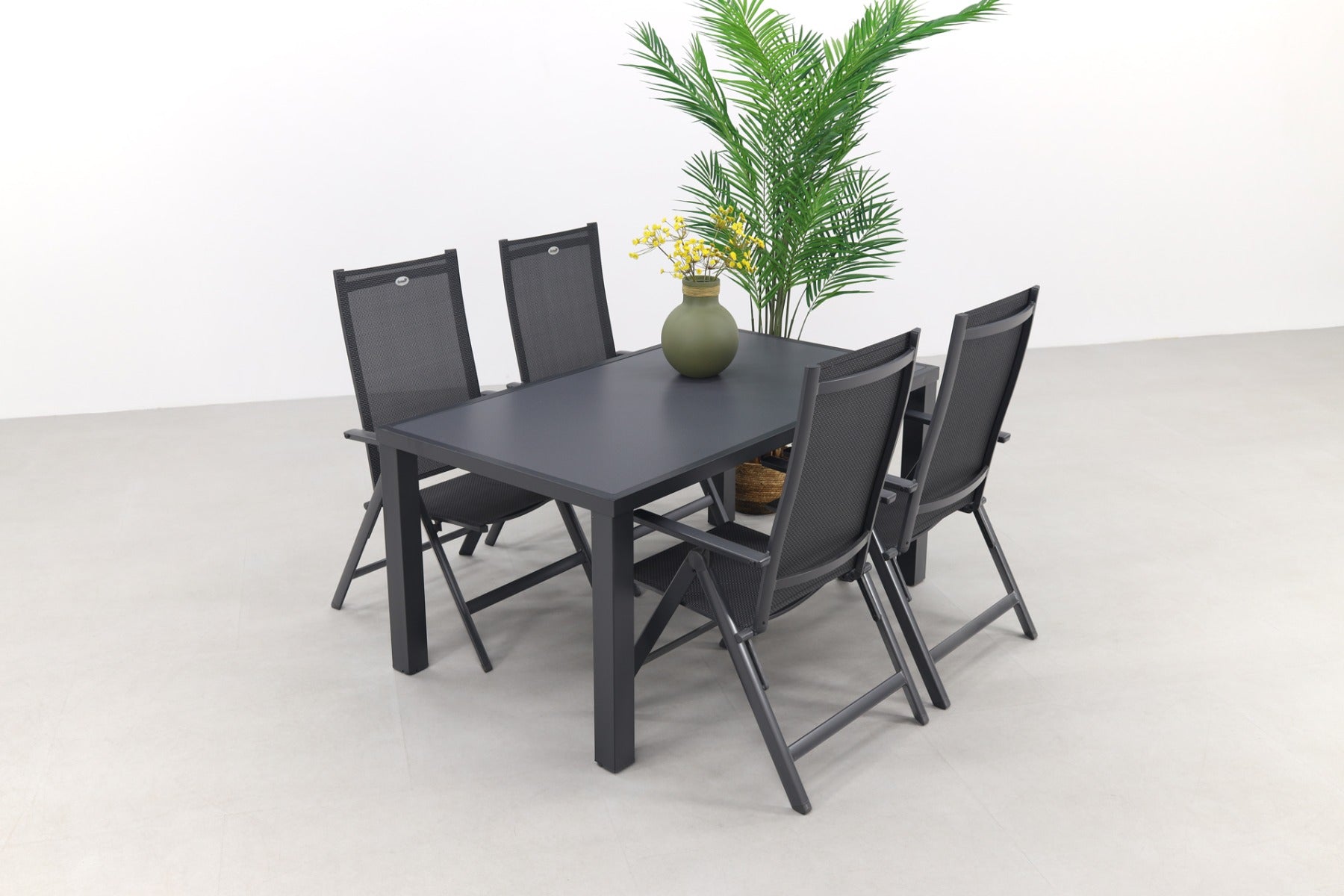 4x Hartman Napoli verstelbare tuinstoel 1x Alma tuintafel antraciet - 160 x 90 cm.