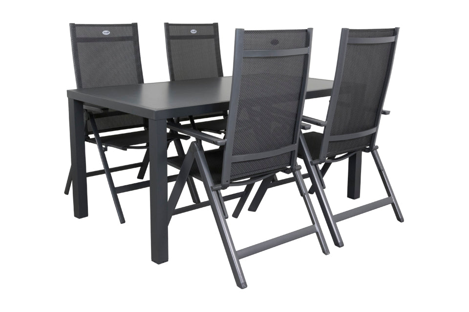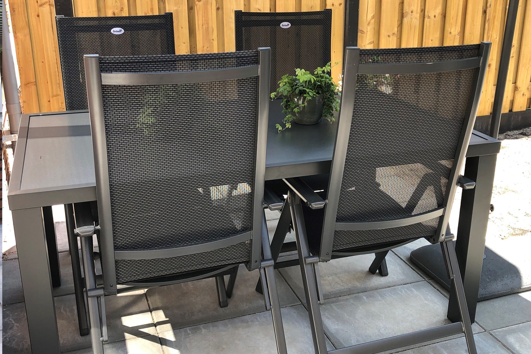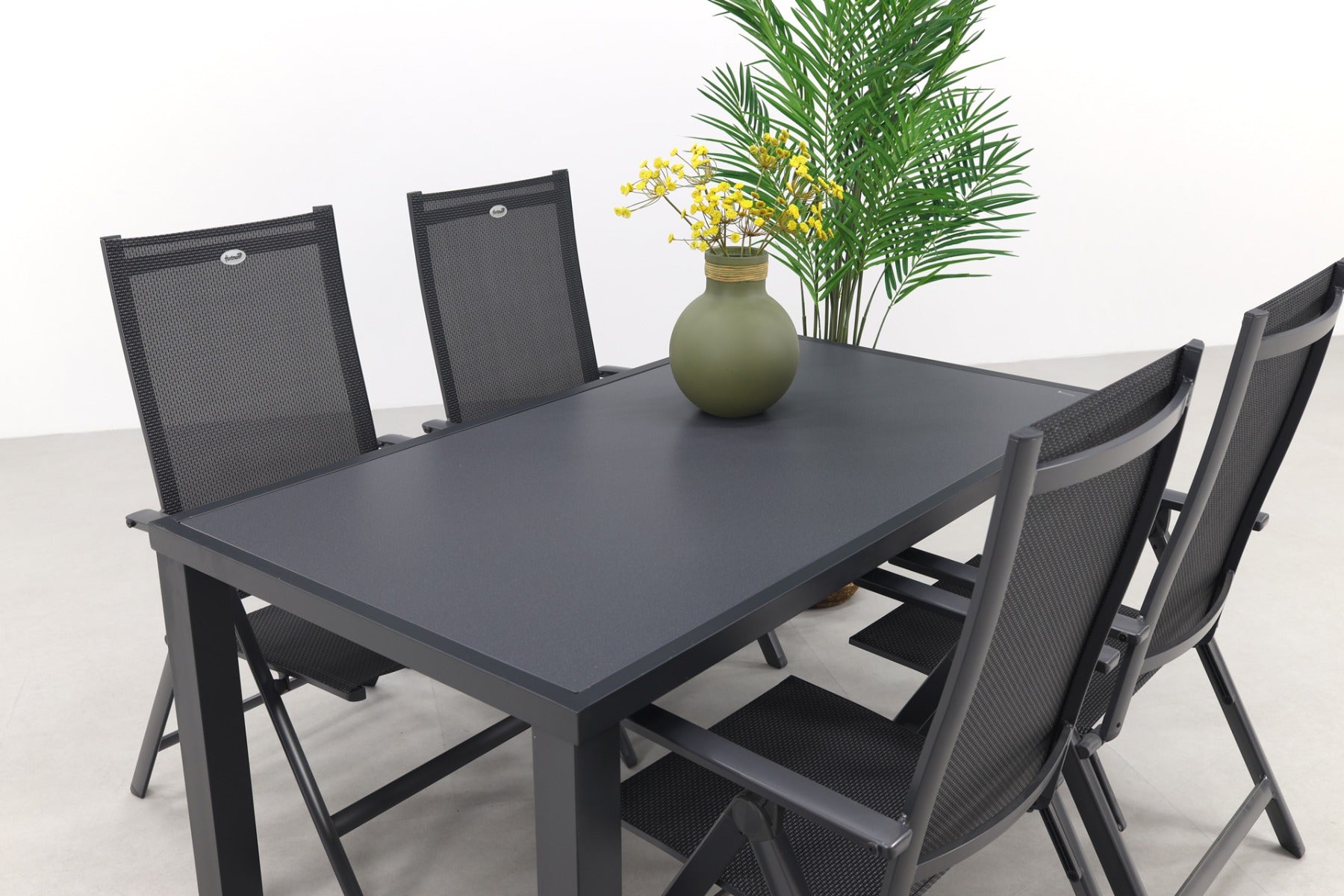 4x Hartman Napoli verstelbare tuinstoel 1x Alma tuintafel antraciet - 160 x 90 cm.