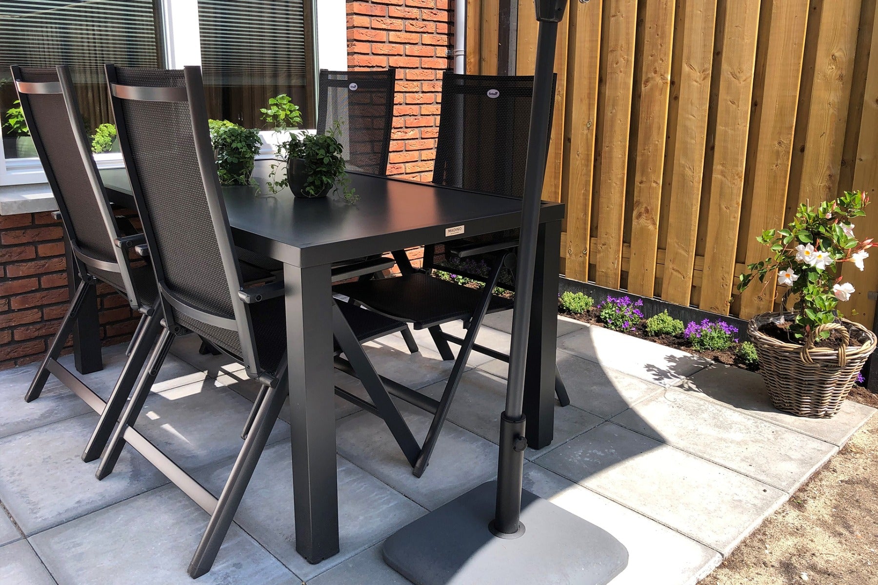 e tuinset is gemaakt van stevige materialen en gaat dan ook jarenlang mee. De comfortabele verstelbare tuinstoelen zorgen ervoor dat je heerlijk kunt dineren en ontspannen.