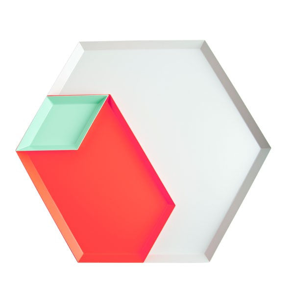 Combineren tot je een ons weegt De vormen van de Kaleido zijn ontleend aan de caleidoscoop. De verschillende vormen vullen elkaar perfect aan en je kunt dan ook eindeloos combineren met verschillende formaten en kleuren. Het schaaltje is gemaakt van gepoedercoat staal en is níet bestand tegen water.