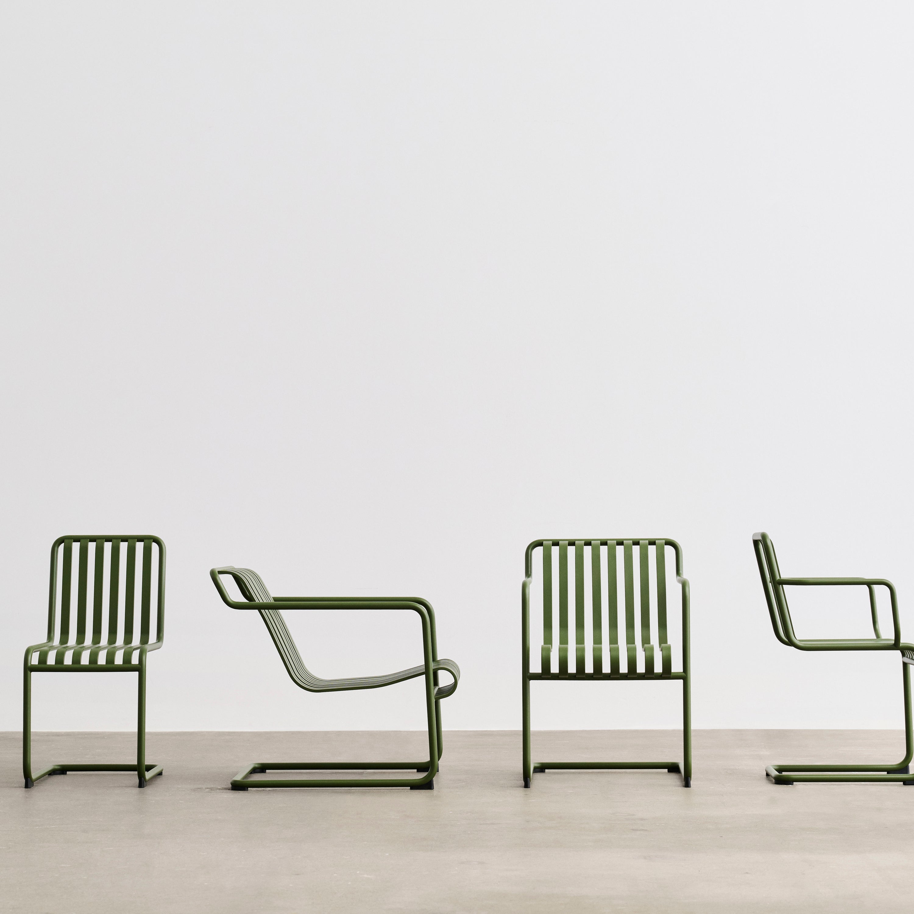 Palissade, maar dan met lef De Cantilever-serie van HAY is een gedurfde doorontwikkeling van het iconische Palissade ontwerp van Ronan & Erwan Bouroullec. Waar andere stoelen staan, lijkt deze te zweven. De buizen volgen geen vaste lijn, maar dansen als het ware door het ontwerp — strak en licht tegelijk. De kracht van deze serie zit in de balans: robuust staal met een verfijnde curve, comfort zonder kussens, elegantie zonder opsmuk. Dankzij het zwevende frame veren de stoelen subtiel mee en voelt elke zitbeweging verrassend licht. Het resultaat? Buitenmeubilair dat net zo goed aanvoelt als het eruitziet.