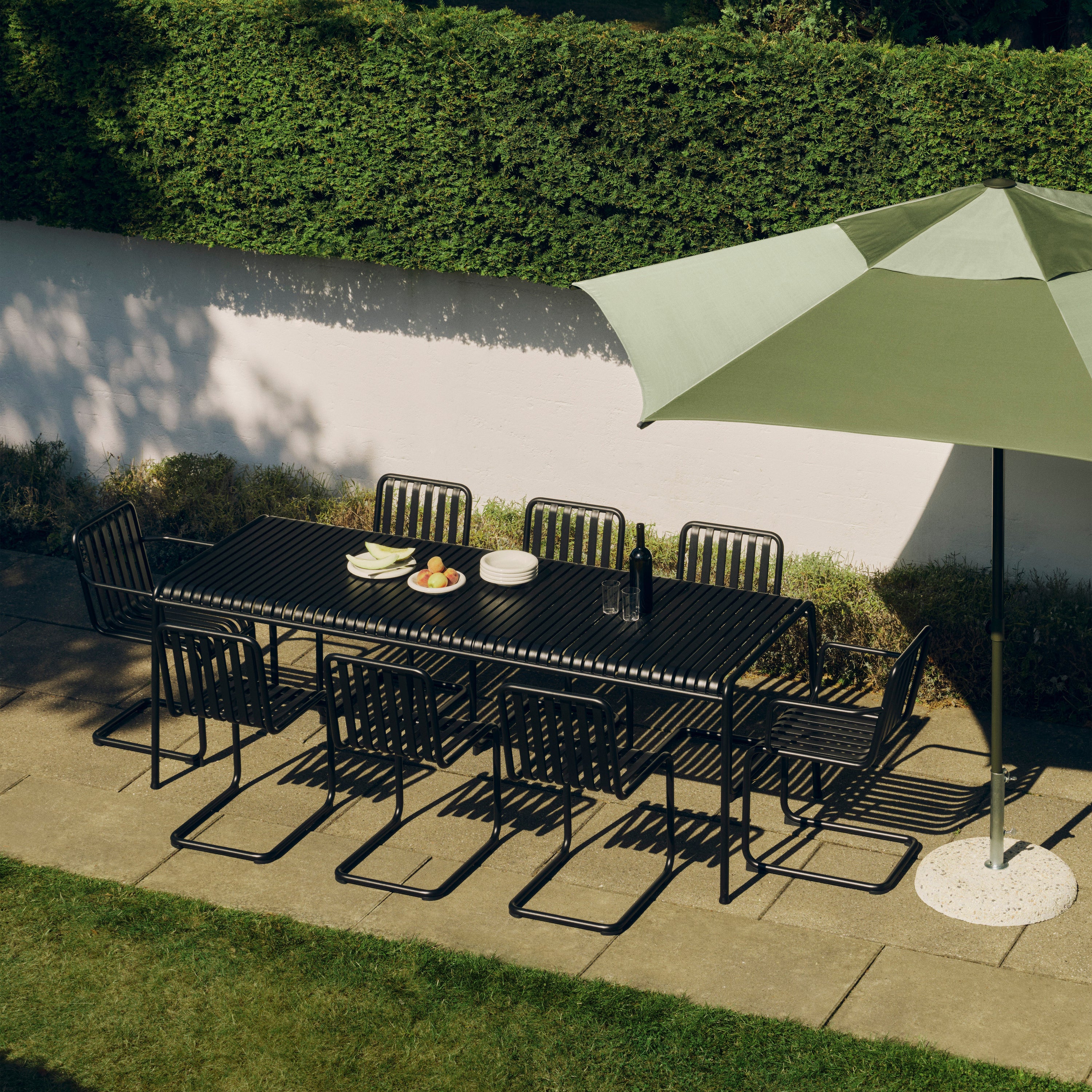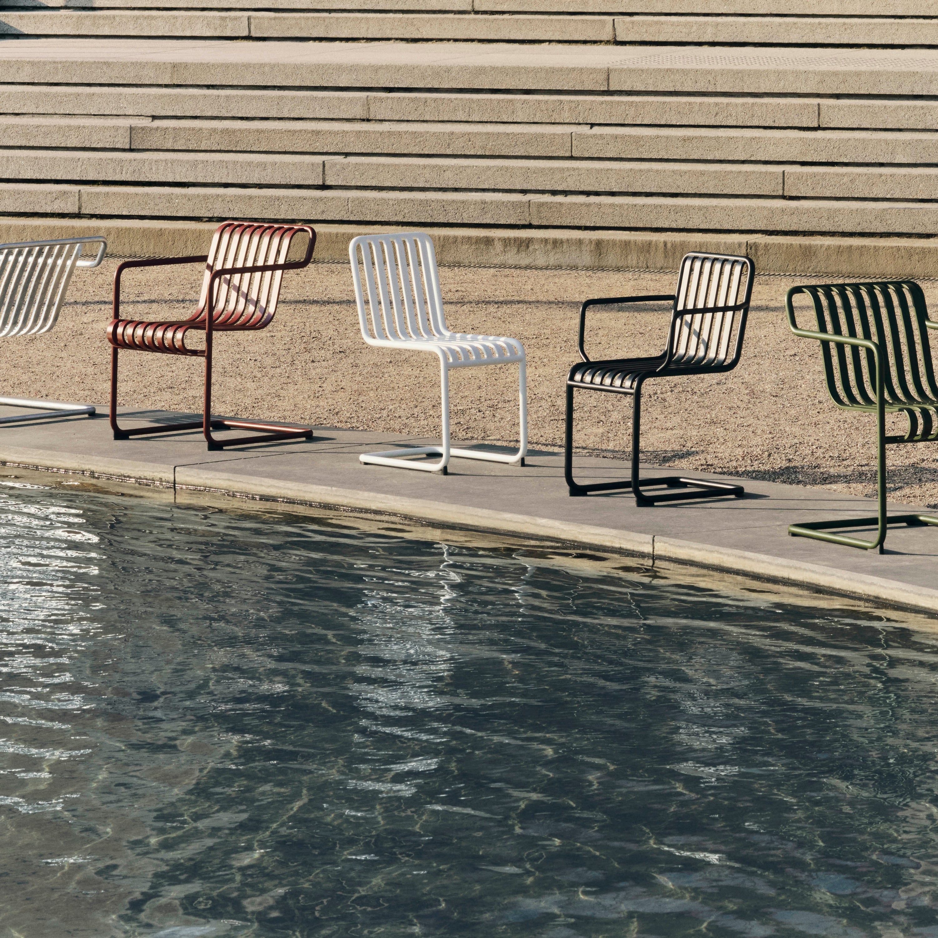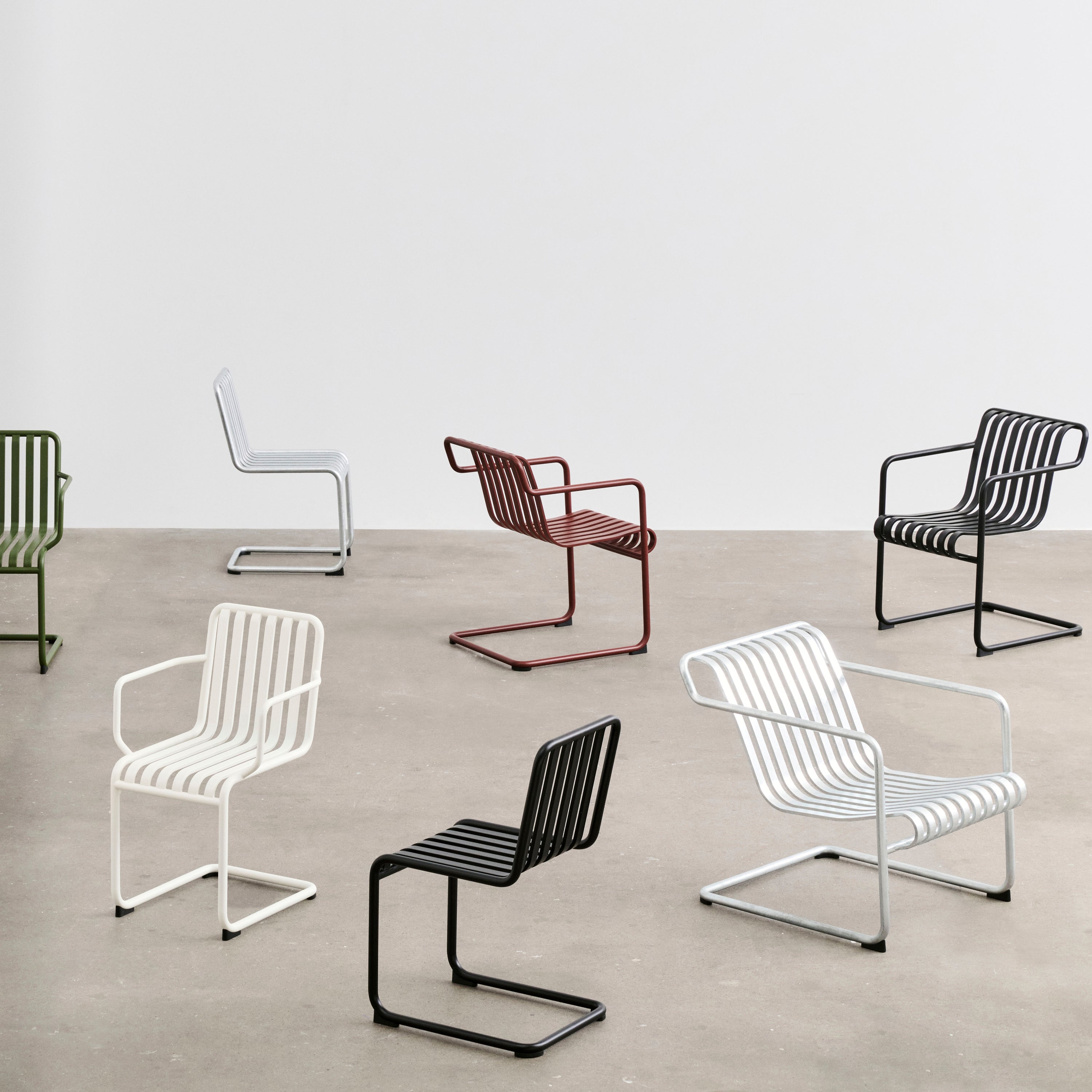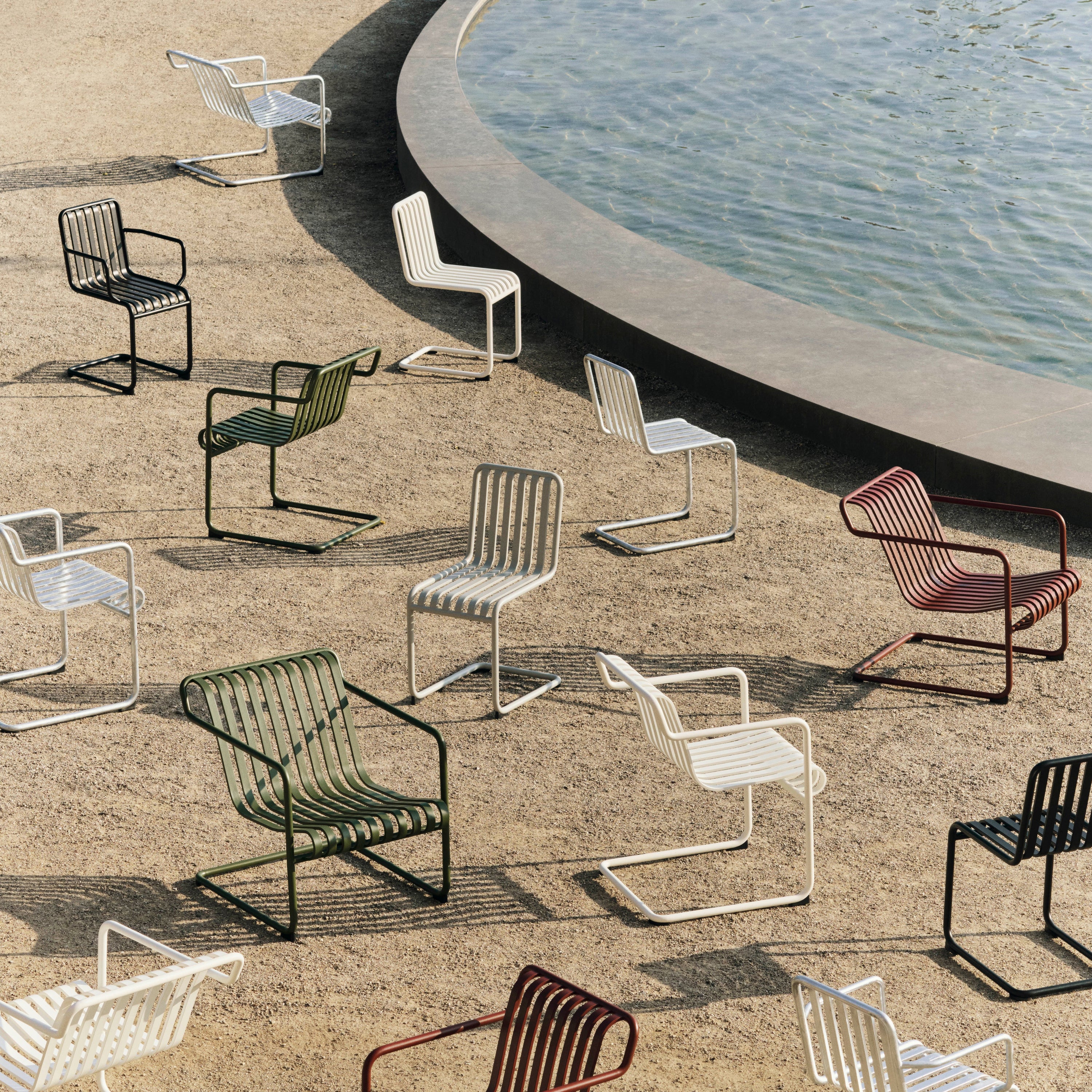 Palissade, maar dan met lef De Cantilever-serie van HAY is een gedurfde doorontwikkeling van het iconische Palissade ontwerp van Ronan & Erwan Bouroullec. Waar andere stoelen staan, lijkt deze te zweven. De buizen volgen geen vaste lijn, maar dansen als het ware door het ontwerp — strak en licht tegelijk. De kracht van deze serie zit in de balans: robuust staal met een verfijnde curve, comfort zonder kussens, elegantie zonder opsmuk. Dankzij het zwevende frame veren de stoelen subtiel mee en voelt elke zitbeweging verrassend licht. Het resultaat? Buitenmeubilair dat net zo goed aanvoelt als het eruitziet.