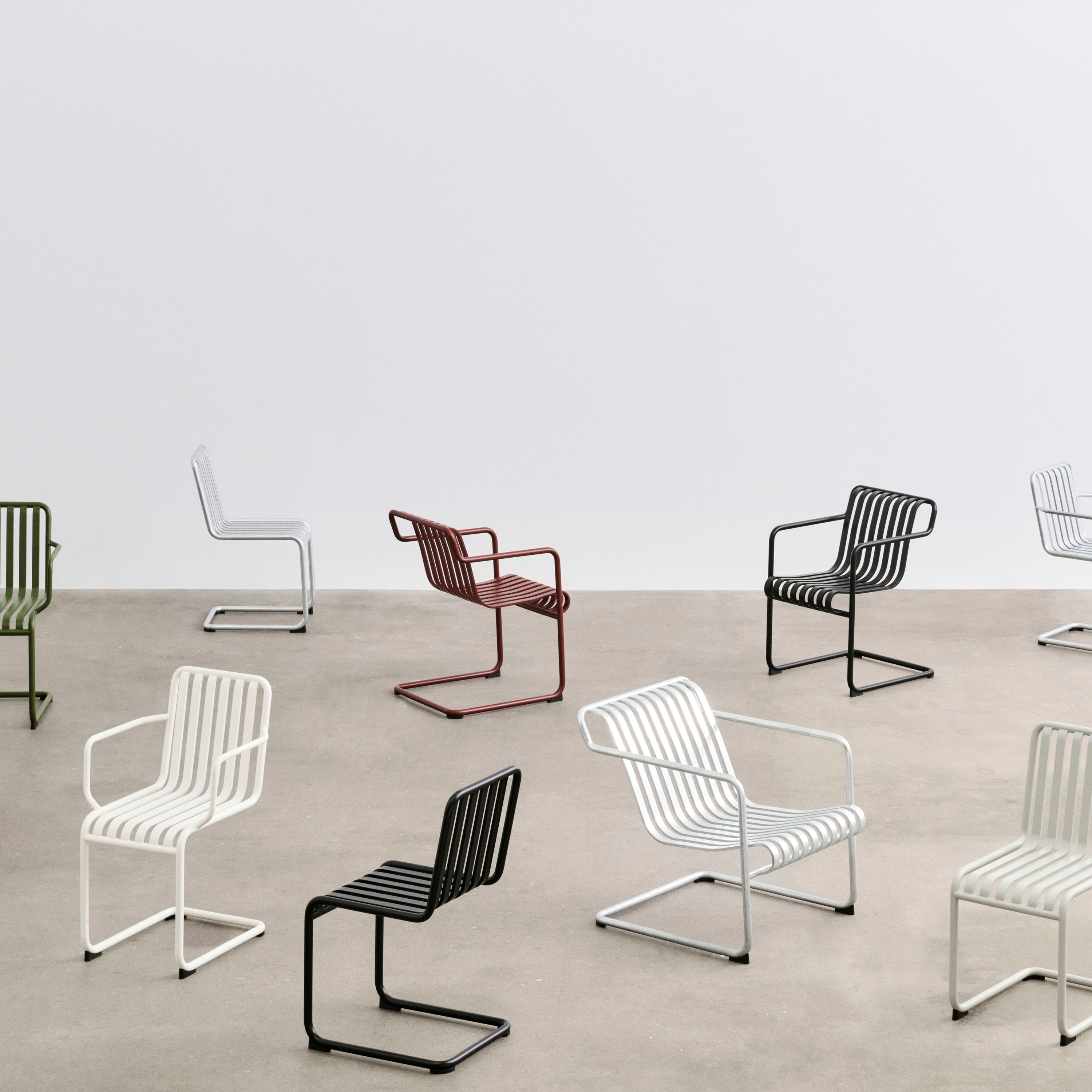 Palissade, maar dan met lef De Cantilever-serie van HAY is een gedurfde doorontwikkeling van het iconische Palissade ontwerp van Ronan & Erwan Bouroullec. Waar andere stoelen staan, lijkt deze te zweven. De buizen volgen geen vaste lijn, maar dansen als het ware door het ontwerp — strak en licht tegelijk. De kracht van deze serie zit in de balans: robuust staal met een verfijnde curve, comfort zonder kussens, elegantie zonder opsmuk. Dankzij het zwevende frame veren de stoelen subtiel mee en voelt elke zitbeweging verrassend licht. Het resultaat? Buitenmeubilair dat net zo goed aanvoelt als het eruitziet.