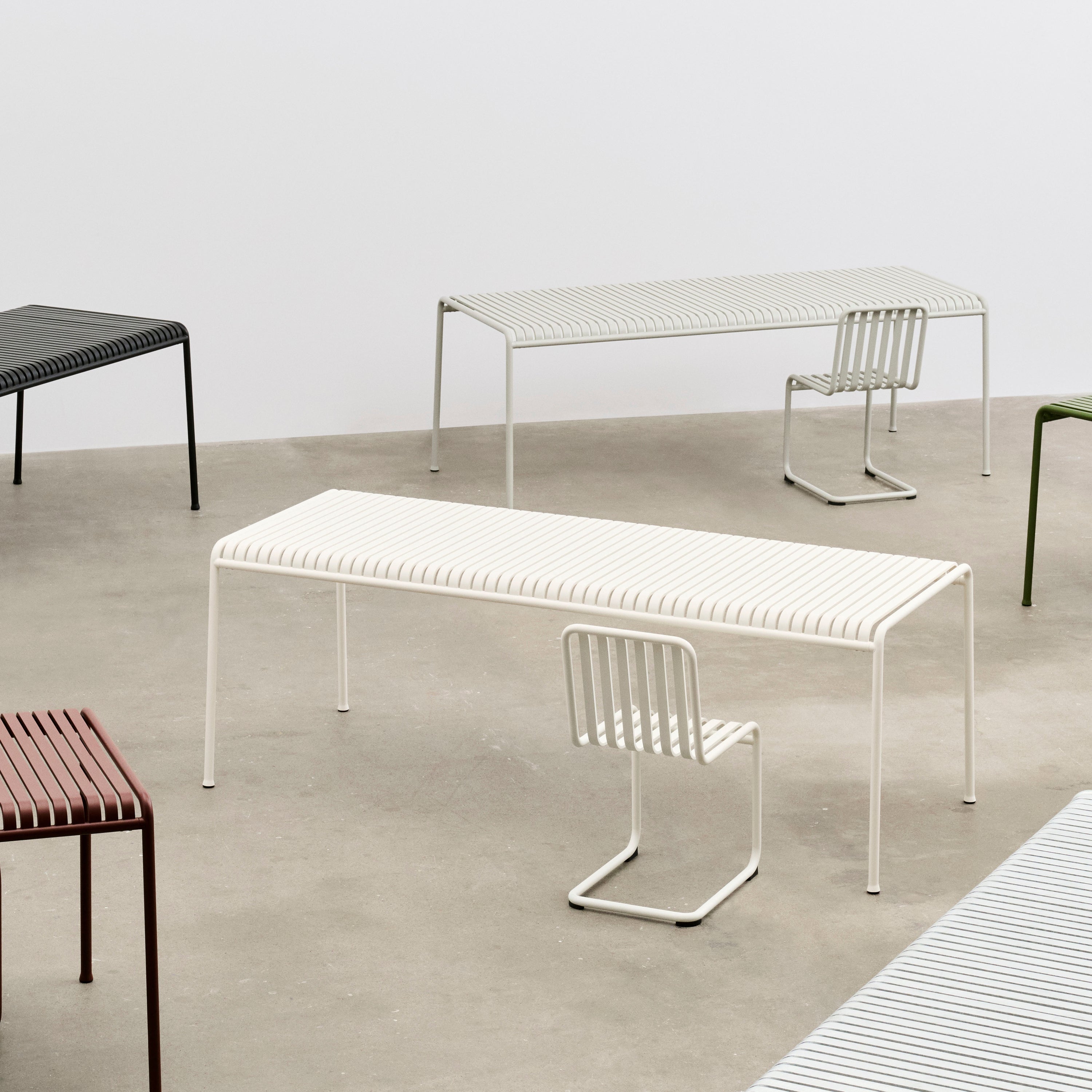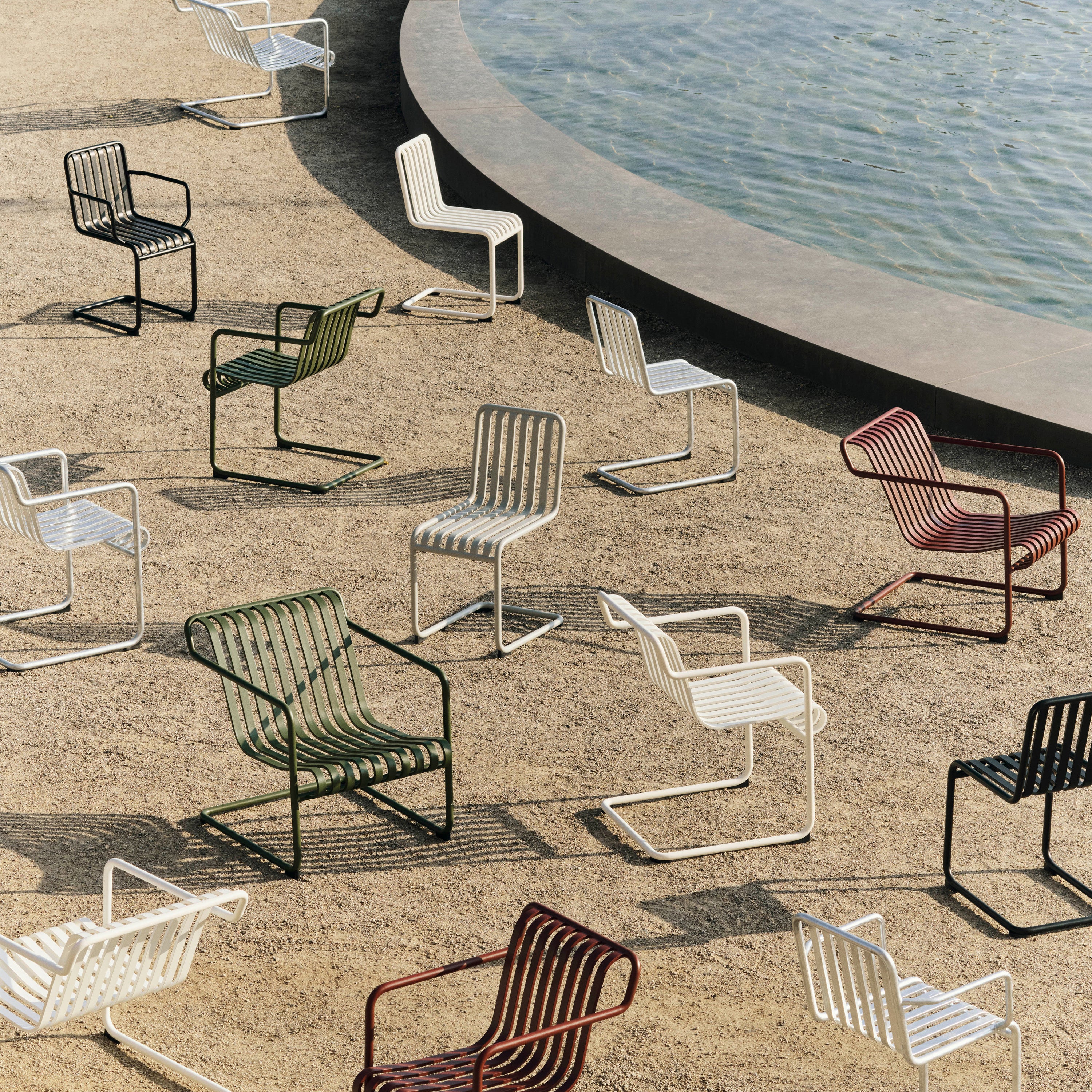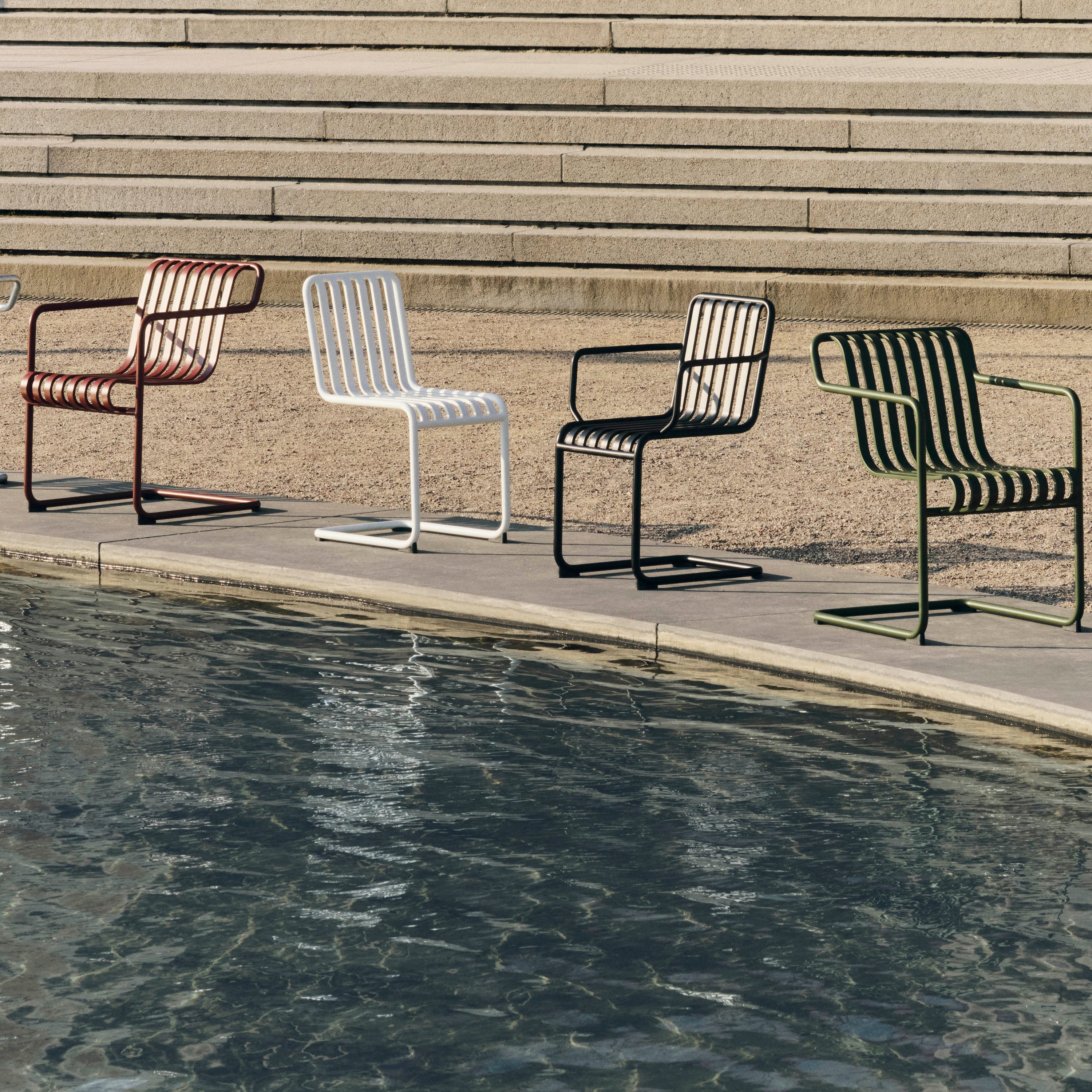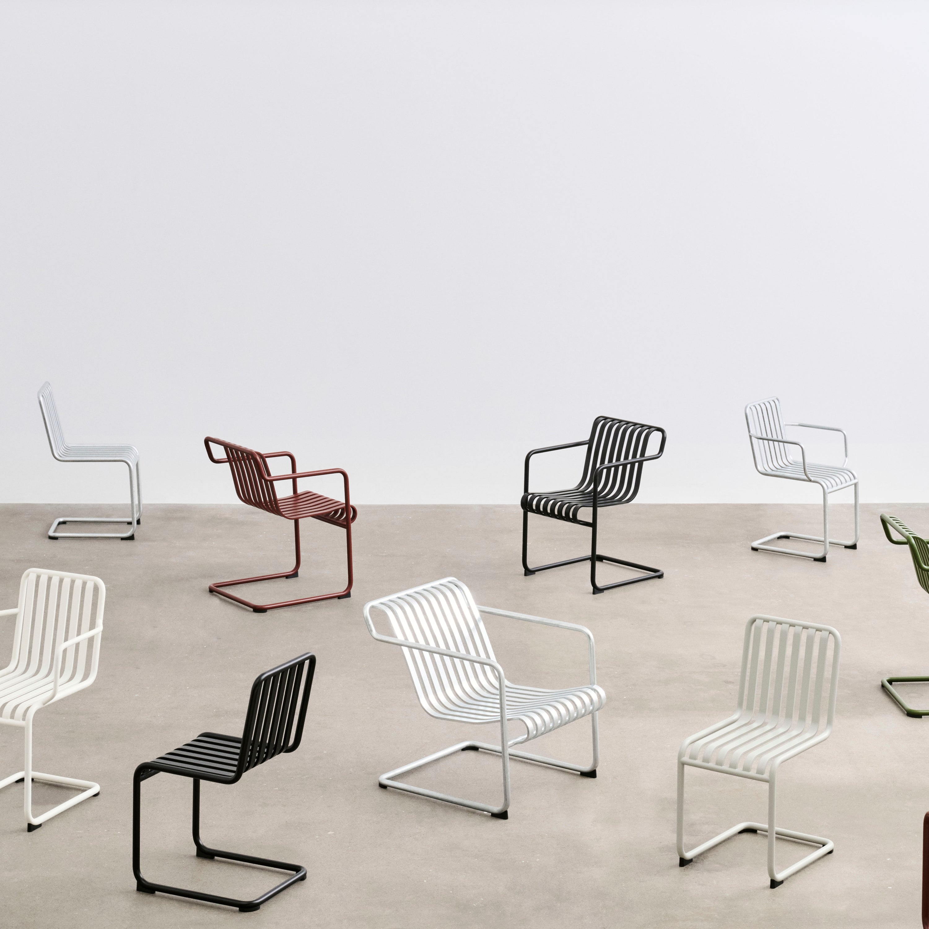 Palissade, maar dan met lef De Cantilever-serie van HAY is een gedurfde doorontwikkeling van het iconische Palissade ontwerp van Ronan & Erwan Bouroullec. Waar andere stoelen staan, lijkt deze te zweven. De buizen volgen geen vaste lijn, maar dansen als het ware door het ontwerp — strak en licht tegelijk. De kracht van deze serie zit in de balans: robuust staal met een verfijnde curve, comfort zonder kussens, elegantie zonder opsmuk. Dankzij het zwevende frame veren de stoelen subtiel mee en voelt elke zitbeweging verrassend licht. Het resultaat? Buitenmeubilair dat net zo goed aanvoelt als het eruitziet.