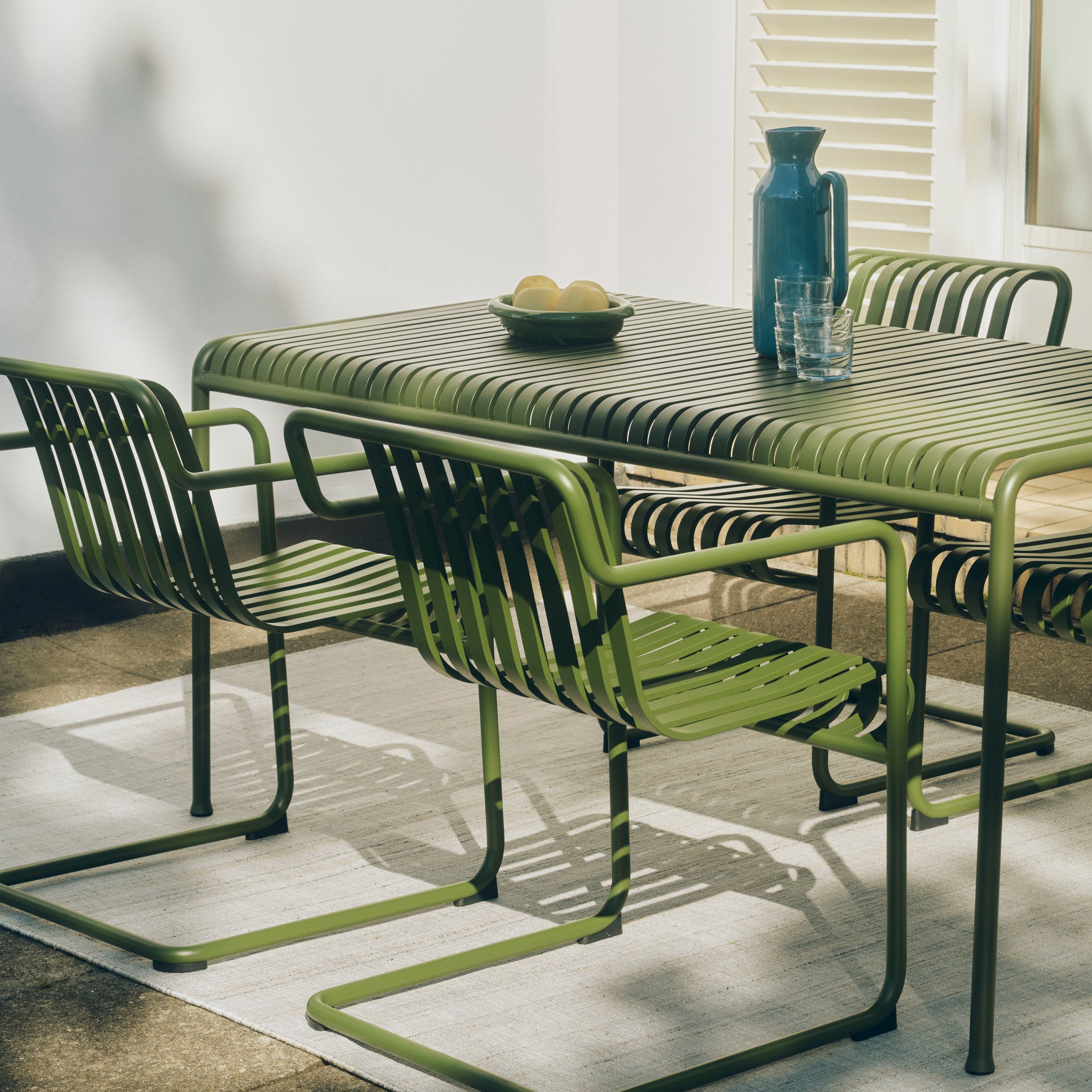 Palissade, maar dan met lef De Cantilever-serie van HAY is een gedurfde doorontwikkeling van het iconische Palissade ontwerp van Ronan & Erwan Bouroullec. Waar andere stoelen staan, lijkt deze te zweven. De buizen volgen geen vaste lijn, maar dansen als het ware door het ontwerp — strak en licht tegelijk. De kracht van deze serie zit in de balans: robuust staal met een verfijnde curve, comfort zonder kussens, elegantie zonder opsmuk. Dankzij het zwevende frame veren de stoelen subtiel mee en voelt elke zitbeweging verrassend licht. Het resultaat? Buitenmeubilair dat net zo goed aanvoelt als het eruitziet.