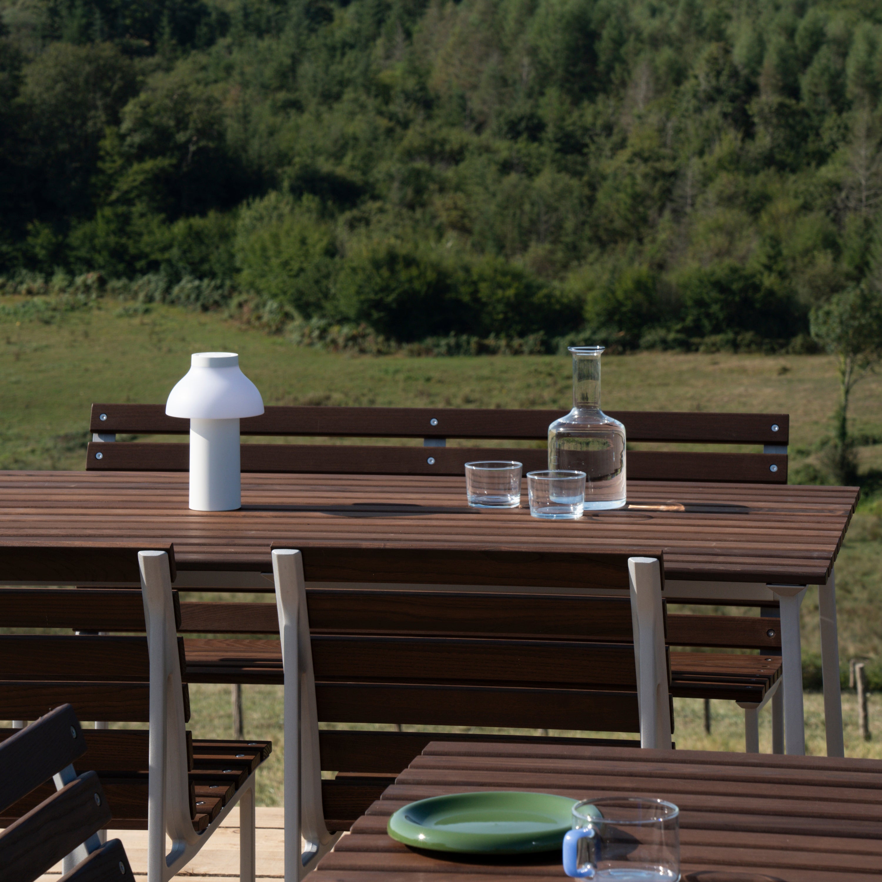 - In een warme houttint die natuurlijk blendt met de omgeving