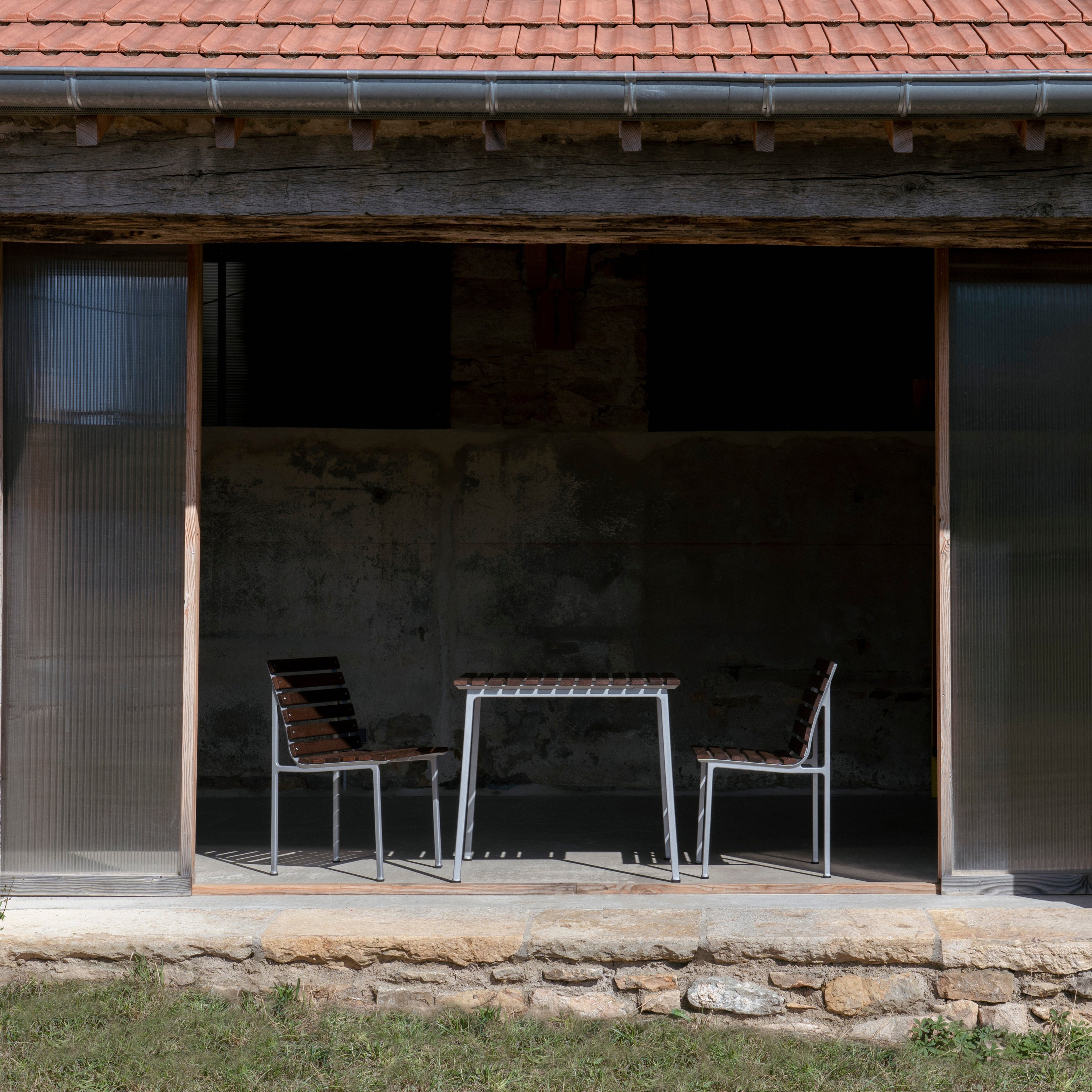- In een warme houttint die natuurlijk blendt met de omgeving