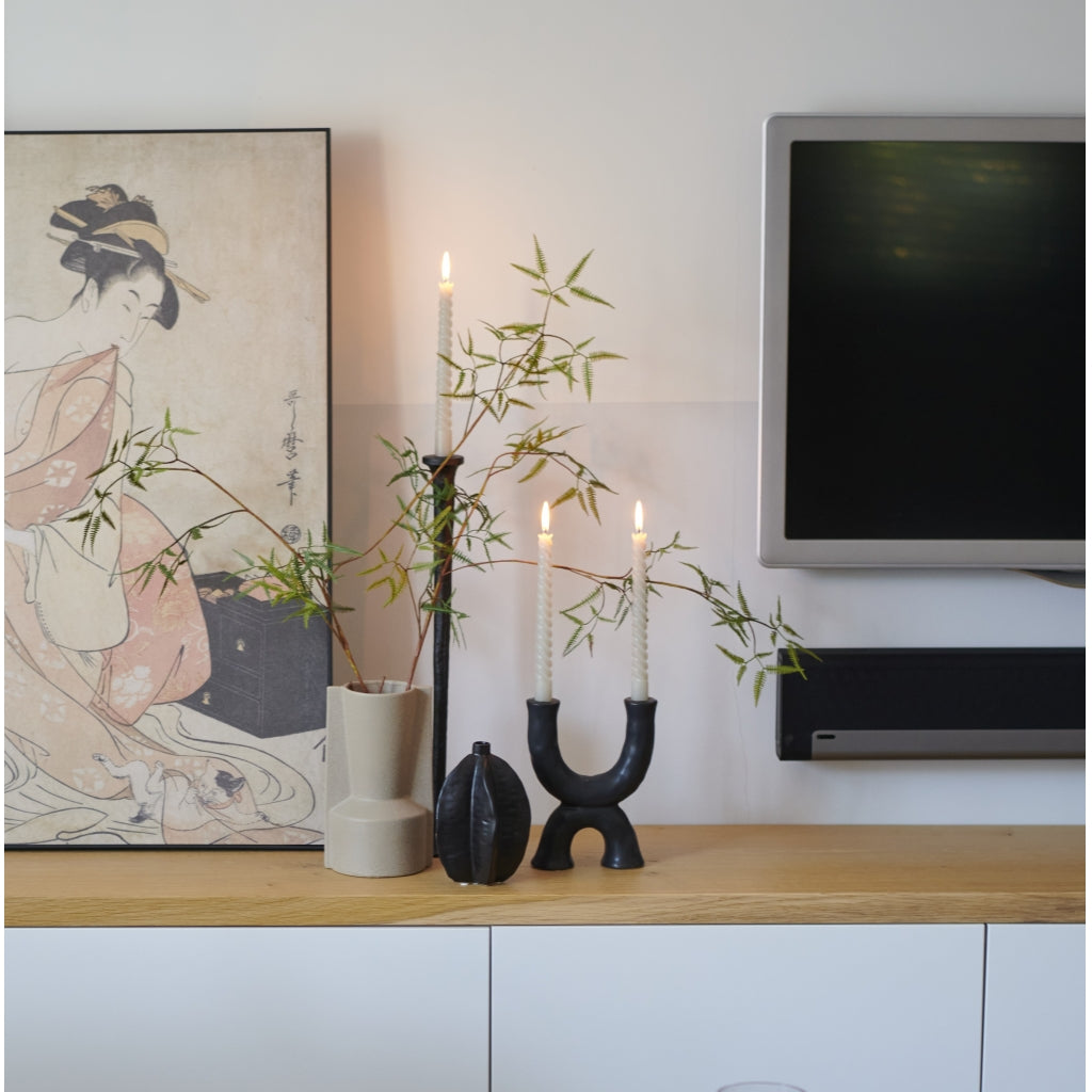 HD Collection Vaas Gerjo - Beige|Creme - Keramiek - 14x24x12cm (BxHxD)