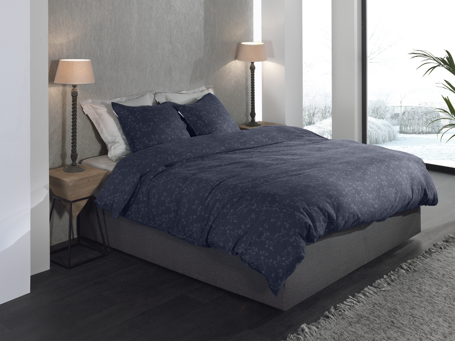 Heckett Lane Dekbedovertrek Flanel Alloro - dark blue