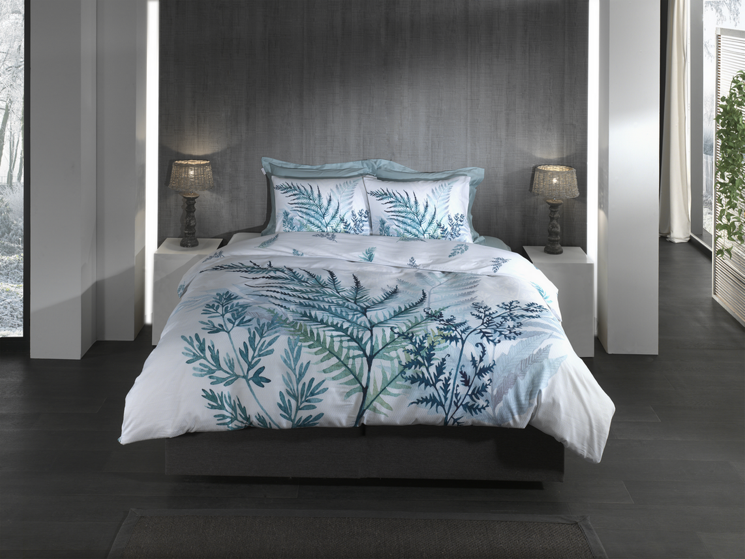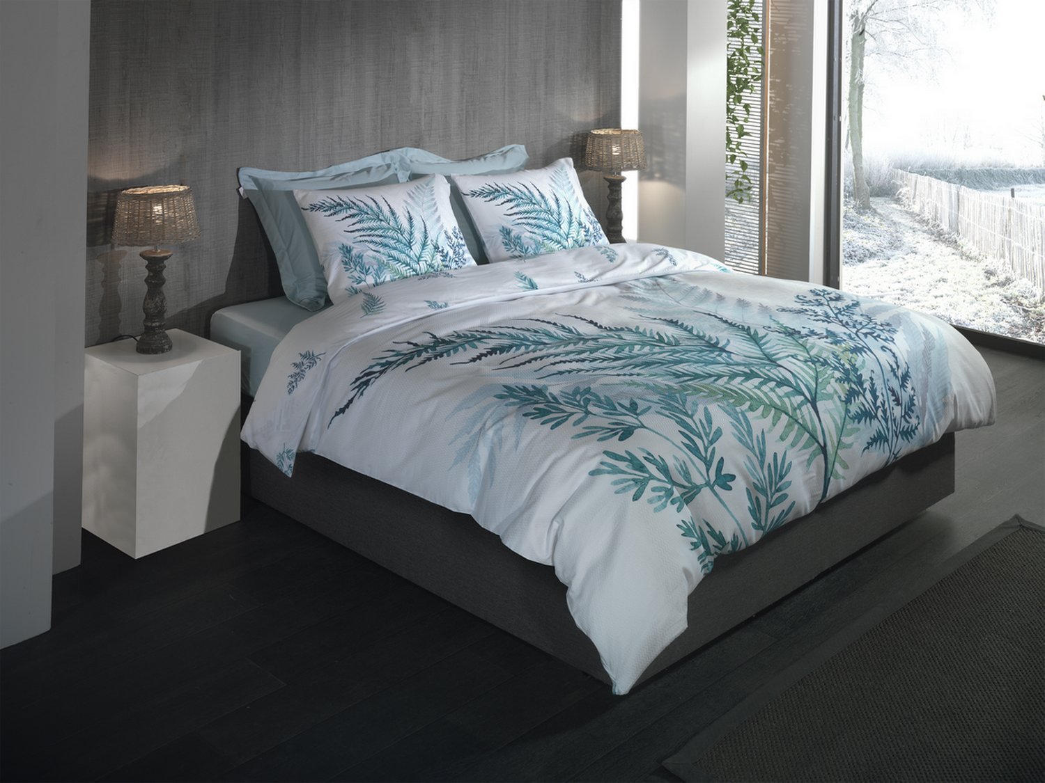 Het Hailee dekbedovertrek combineert de rust van een frisse witte basis met een levendig blauwe bladerenprint, perfect voor het creëren van een serene en stijlvolle slaapkamer. Kies voor tijdloze elegantie met dit design van Heckett Lane.
