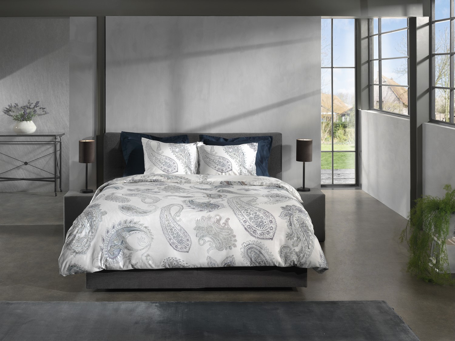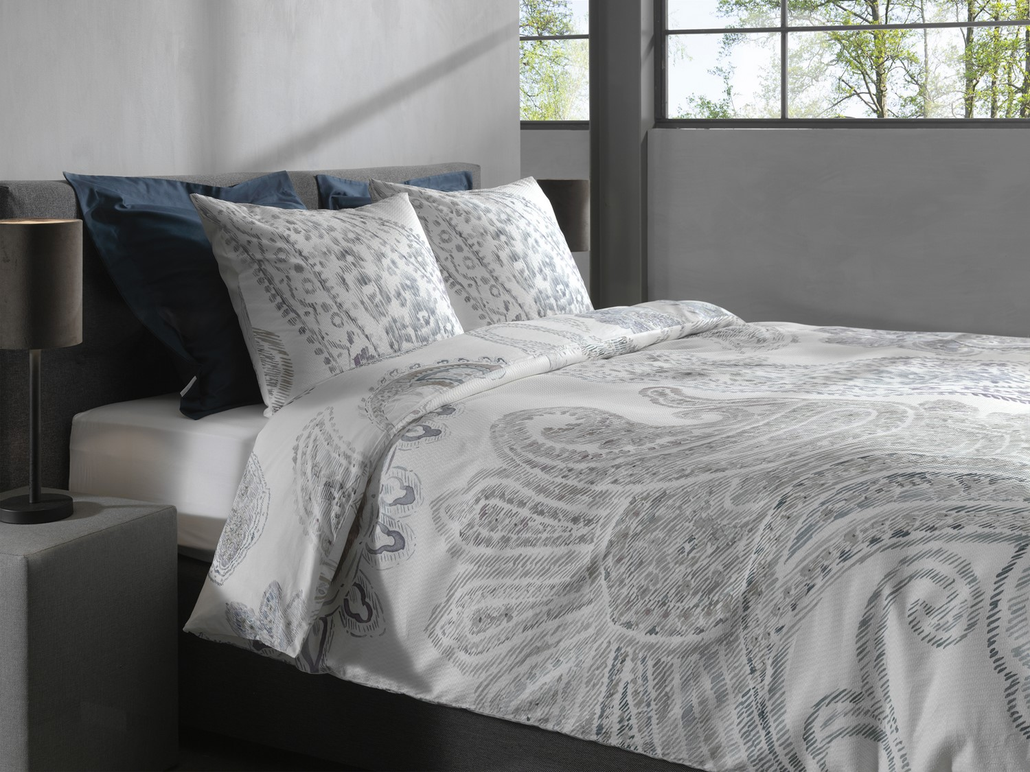 Upgrade je slaapkamer met het Muelle dekbedovertrek uit de collectie van Heckett Lane. Het Muelle dekbedovertrek is gemaakt van 100% katoen-dobby materiaal. Met het elegante paisley patroon geeft het Muelle dekbedovertrek een vleugje klasse aan elke slaapkamer. Aan de onderkant voorzien van een dubbel doorlopende instopstrook. Hierdoor ook geschikt voor extra lange dekbedden. Op beide zijden van het overtrek is een andere print te zien.