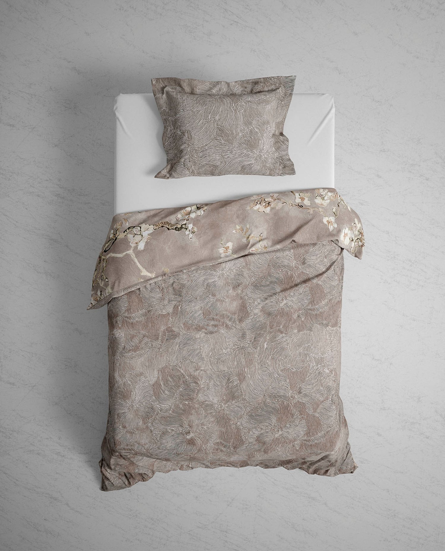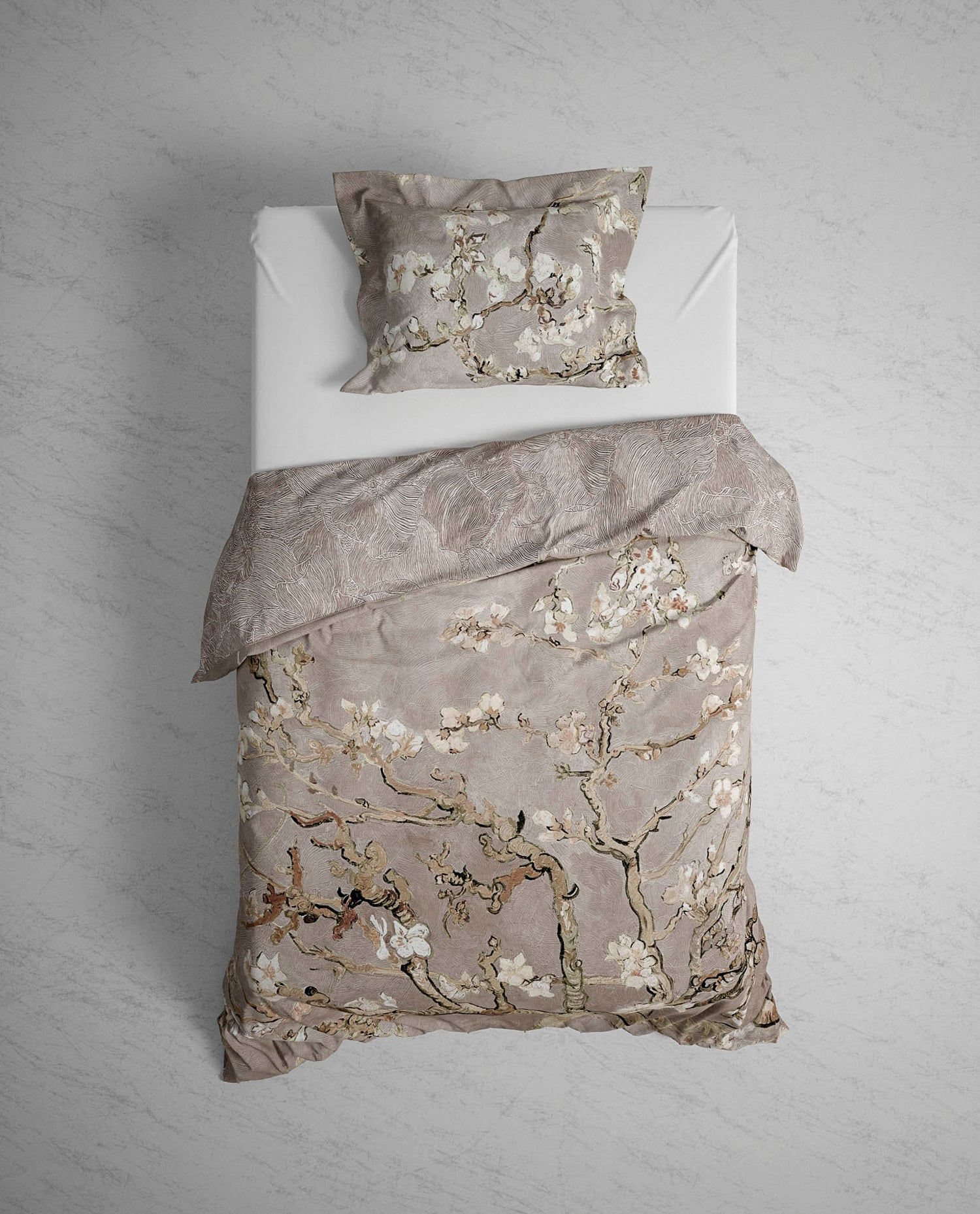 Haal kunst in je slaapkamer met dit fraaie amandelbloessem dekbedovertrek. Het taupekleurige ontwerp heeft iets weg van het bekende Van Gogh schilderij waarop eveneens prachtige takken te zien zijn. Aan de andere kant van dit dubbelzijdige dekbedovertrek vind je rust in zandkleurige strandstrepen. Een heerlijk dekbedovertrek gemaakt van het zachtste katoen.