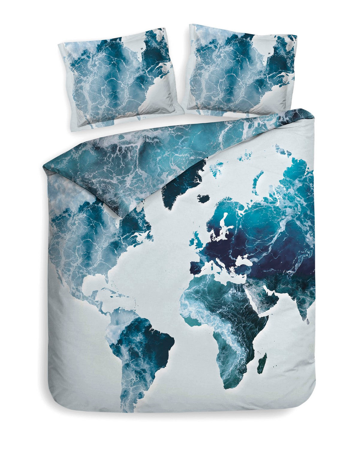 Op dit heerlijke dekbed van Hecket & lane kun je de prachtige continenten van onze aarde bewonderen. Het Camil dekbedovertrek heeft een mooi en krachtig uiterlijk met zijn blauwe kleuren op een witte ondergrond. Wanneer je het dubbelzijdige dekbedovertrek omdraait kijkt je uit over de wilde zeeën. Beiden kanten blijven je intrigeren. Het overtrek wordt geleverd met bijpassende kussenslopen, deze zijn voorzien van een Oxford-rand. De dubbele instopstrook over de gehele breedte maakt het dekbedovertrek ook geschikt voor extra lange dekbedden. Dit dekbedovertrek is gemaakt van 100% katoen- satijn en heeft het GOTS (Global Organic Textile Standard) keurmerk. Door de hoogwaardige kwaliteit voelt het overtrek heerlijk zacht en comfortabel aan en is het goed ademend. Door de satijnbinding krijgt het dekbedovertrek zijn subtiele glans. Ga voor optimaal slaapcomfort en droomweg met dit heerlijke dekbedovertrek.