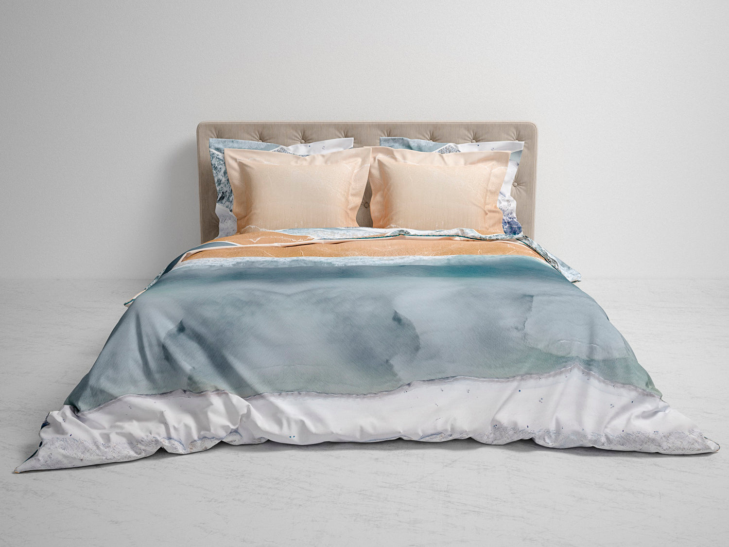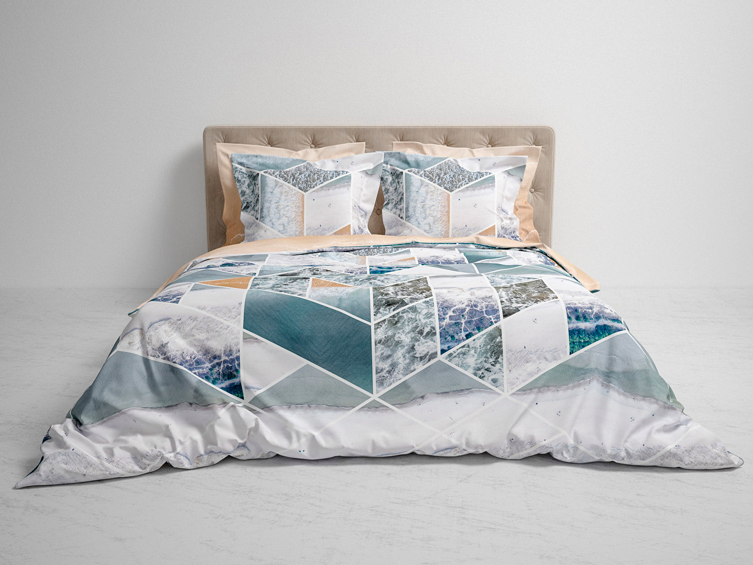 Een modern mozaiek van rustige, maar ook wilde zeegezichten, mooi in balans. Met dit dubbelzijdig digitaal bedrukte dekbedovertrek Carey van Heckett & Lane breng je nautische sferen naar je slaapkamer. Het dekebdovertrek bestaat uit 100% ECO katoen-satijn.
