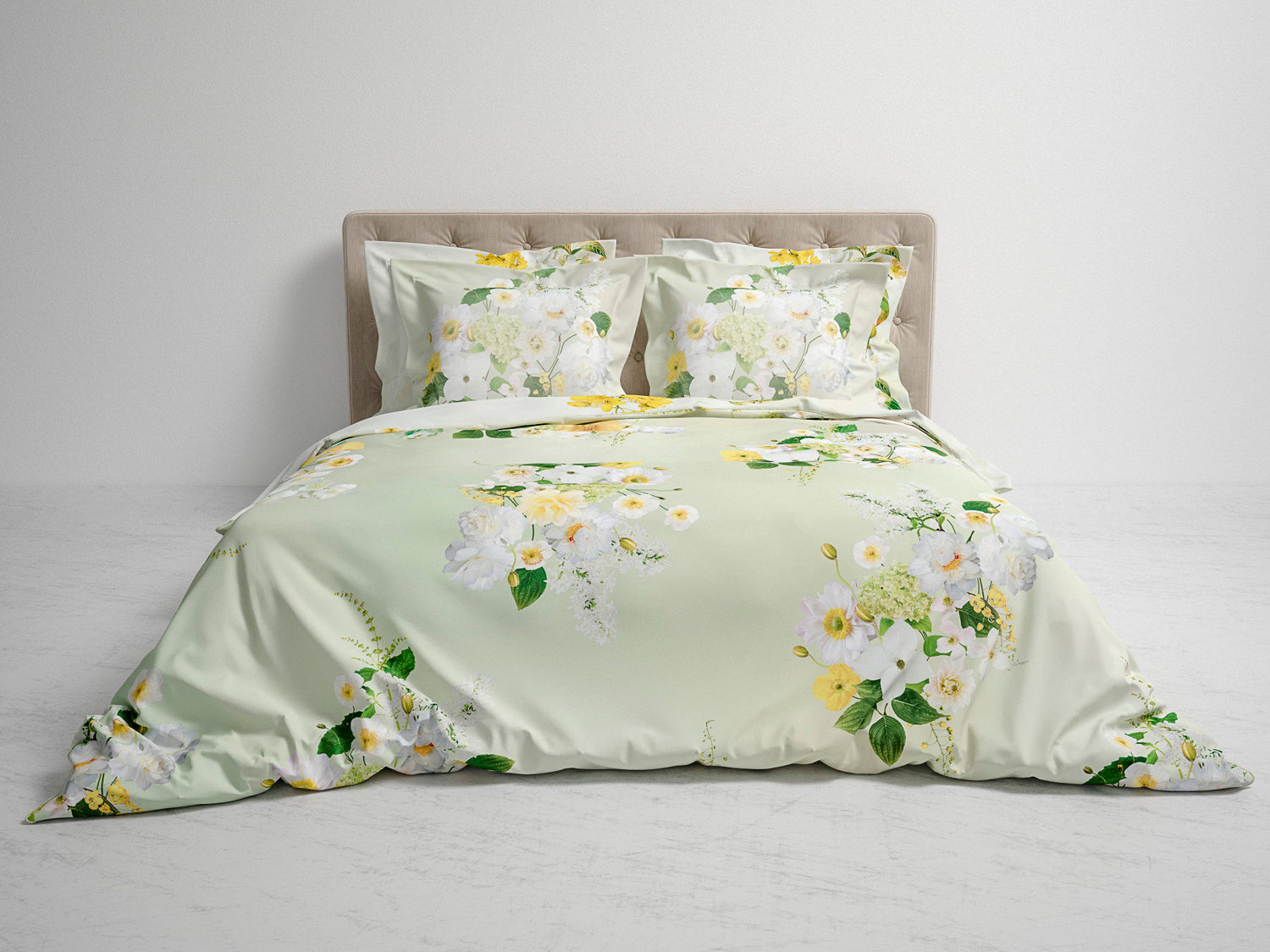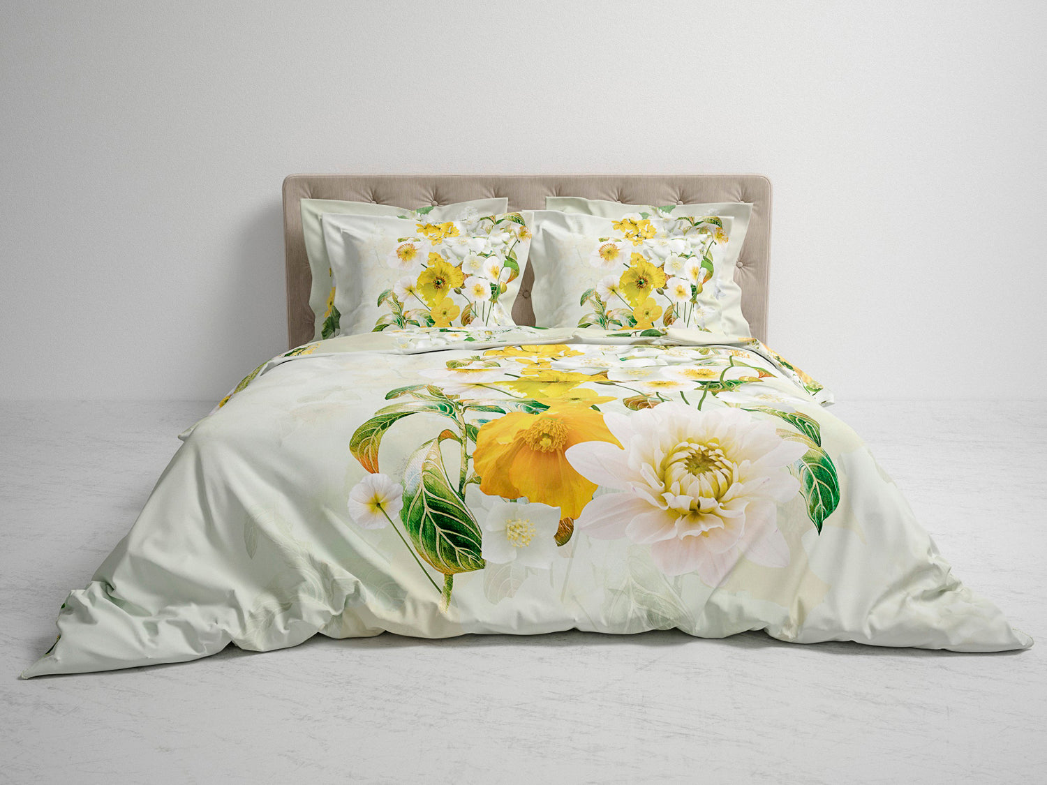 De vrolijke gele en witte bloemen, met prachtige details, passen echt helemaal bij dit seizoen. Dekbedovertrek Daly van Heckett & Lane is dubbelzijdig digitaal geprint en bestaat uit 100% ECO katoen-satijn.
