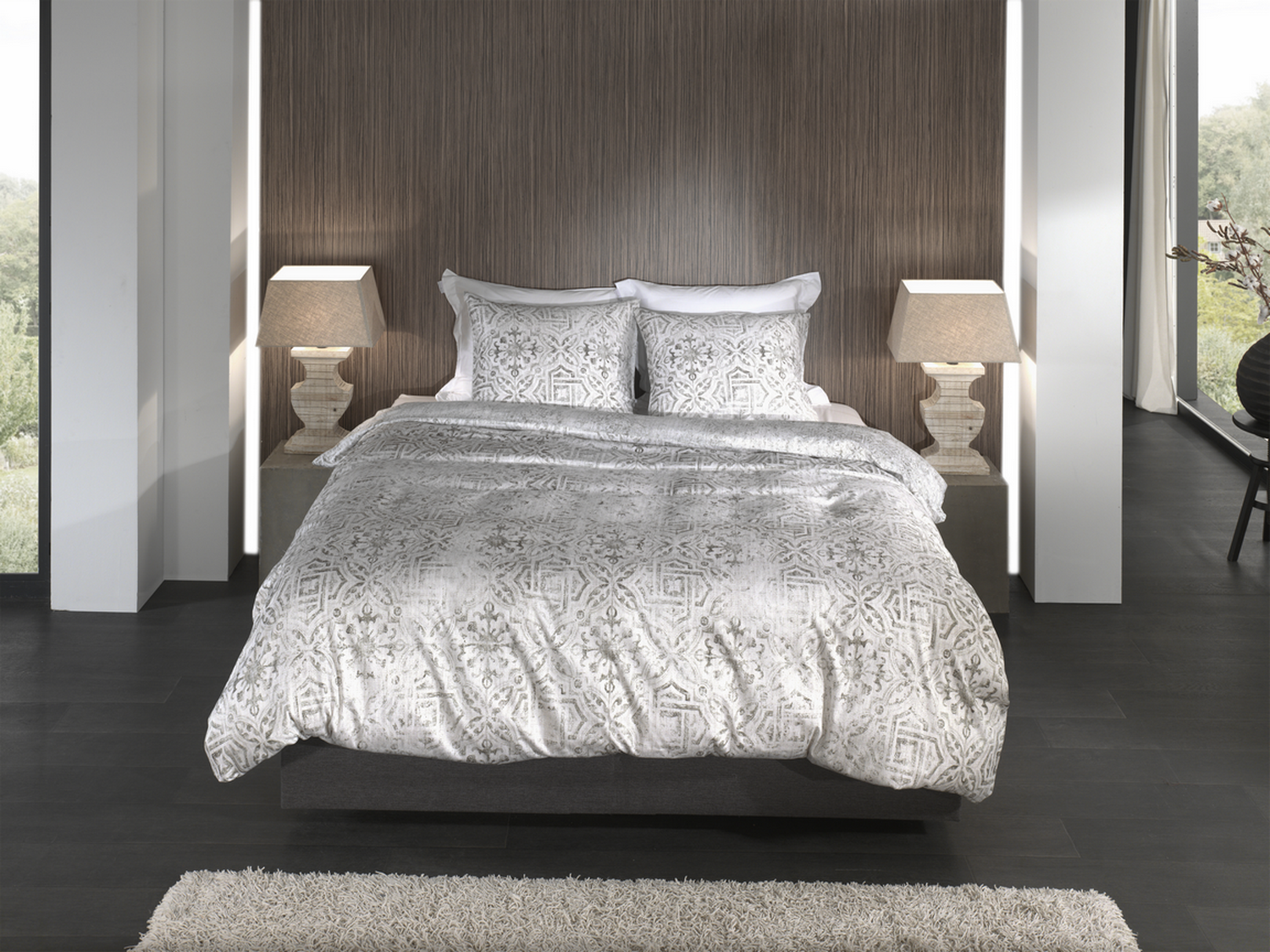 Breng tijdloze elegantie in je slaapkamer met het Esmeralda dekbedovertrek van Heckett Lane. Dit prachtige dekbedovertrek is gemaakt van 100% katoen satijn, wat zorgt voor een zijdezachte textuur en een luxe glans. Het verfijnde ornamentenpatroon op een zachte beige achtergrond creëert een serene en stijlvolle ambiance, perfect voor een slaapkamer met een klassieke en verfijnde uitstraling.