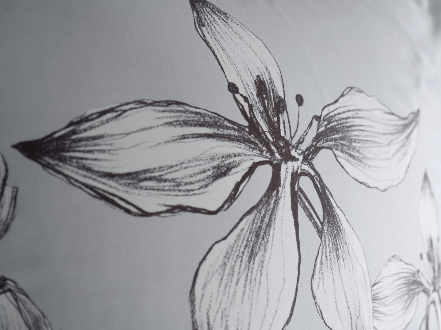 - Design: Witte bloemenprint op een chique grijze achtergrond voor een tijdloze, elegante uitstraling
