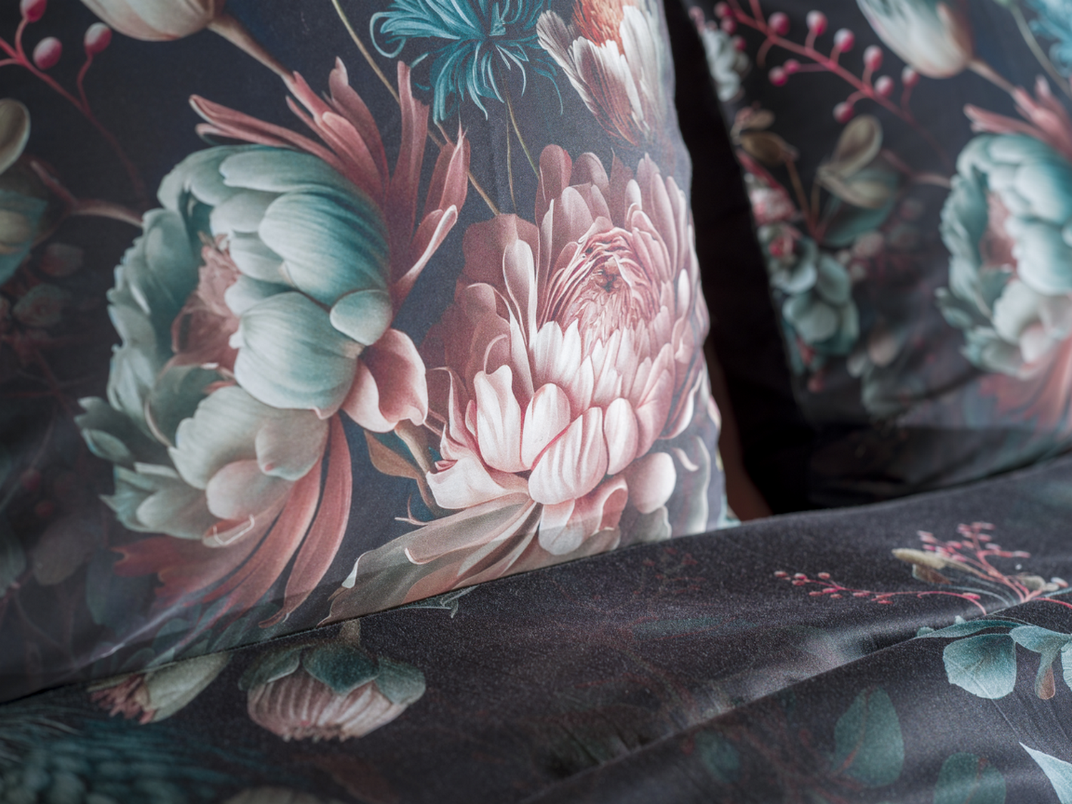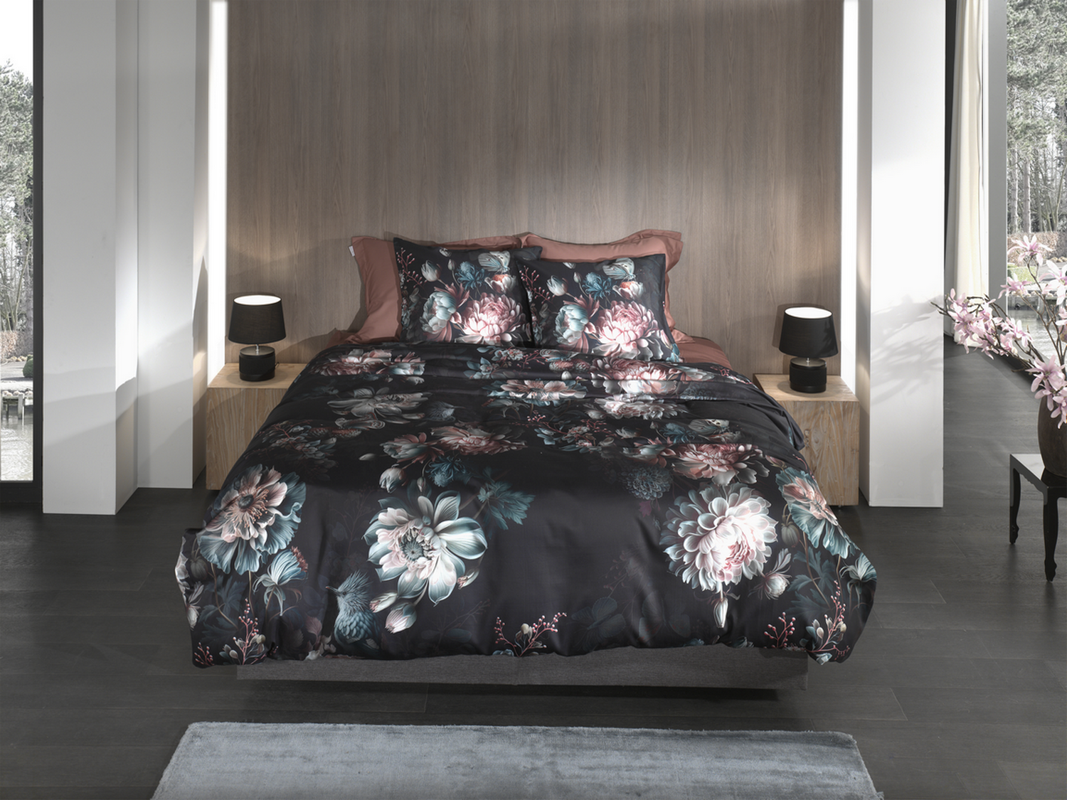 - Design: Luxe bloemenprint op een rijke, donkerblauwe achtergrond, ideaal voor een stijlvolle en verfijnde slaapkamer