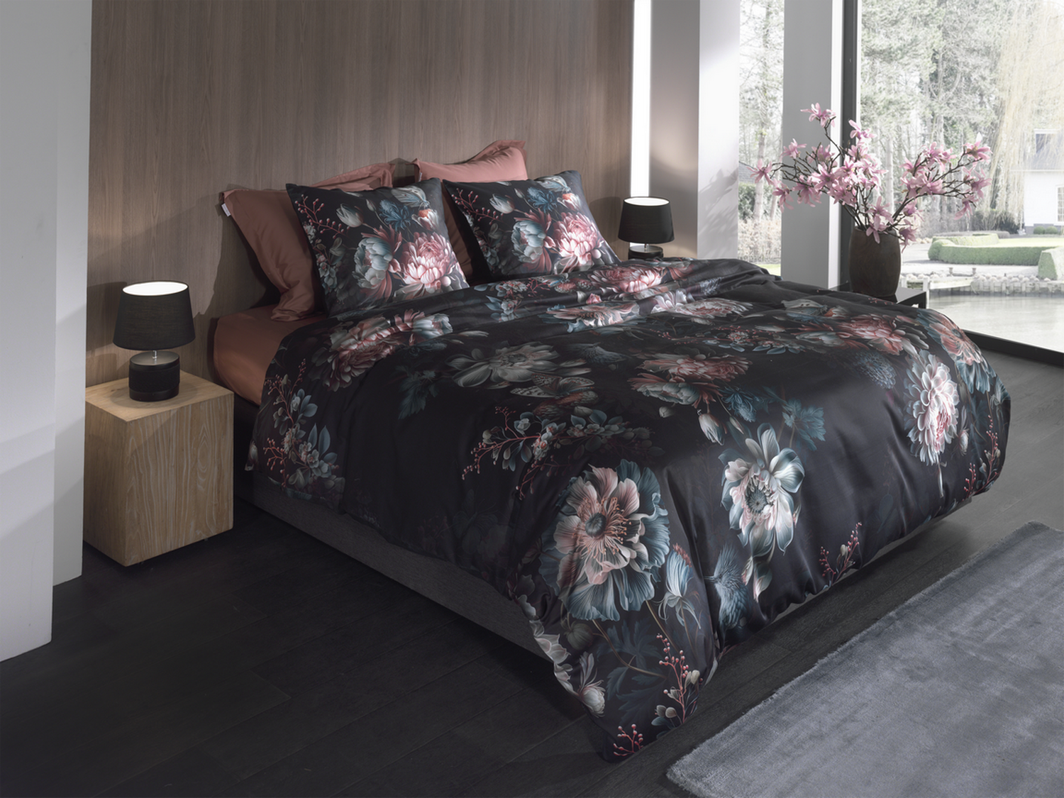 - Design: Luxe bloemenprint op een rijke, donkerblauwe achtergrond, ideaal voor een stijlvolle en verfijnde slaapkamer
