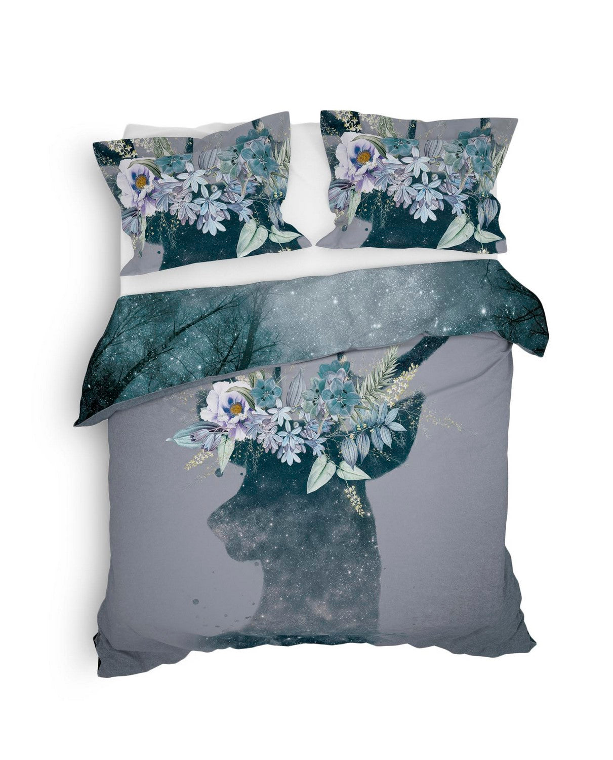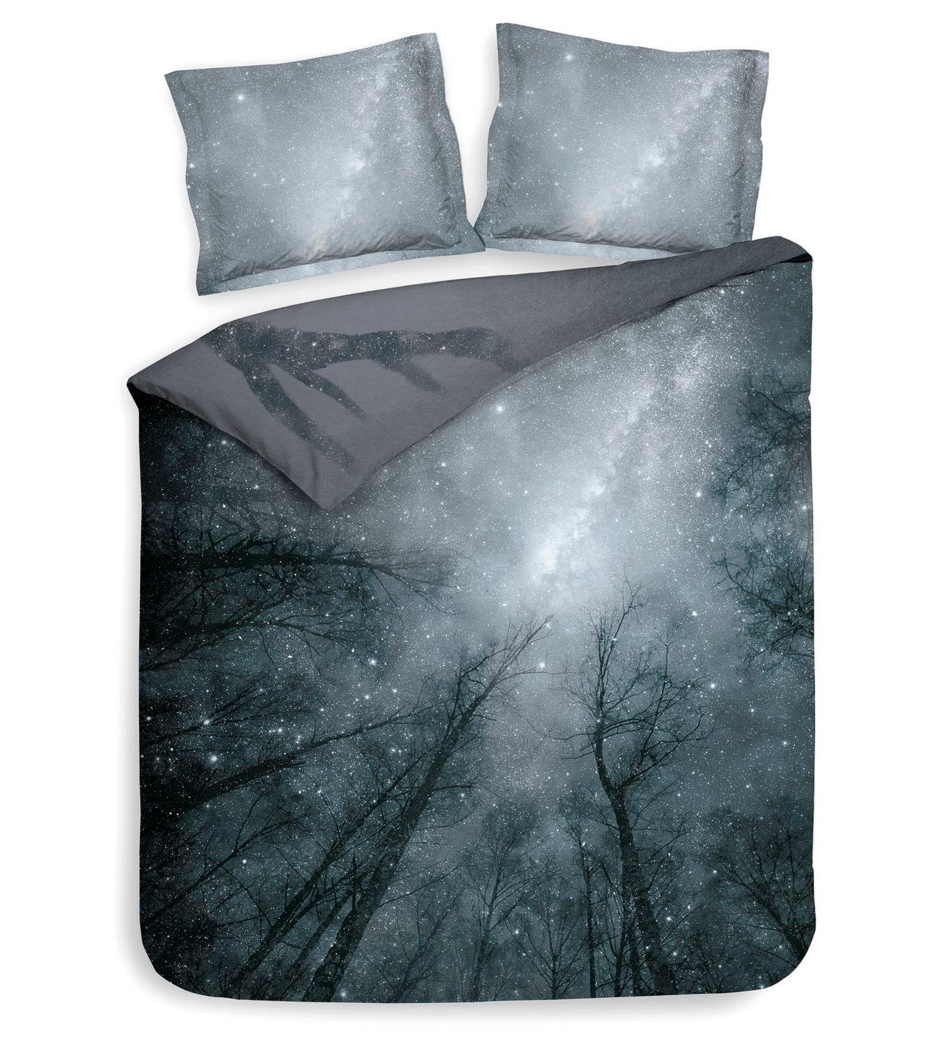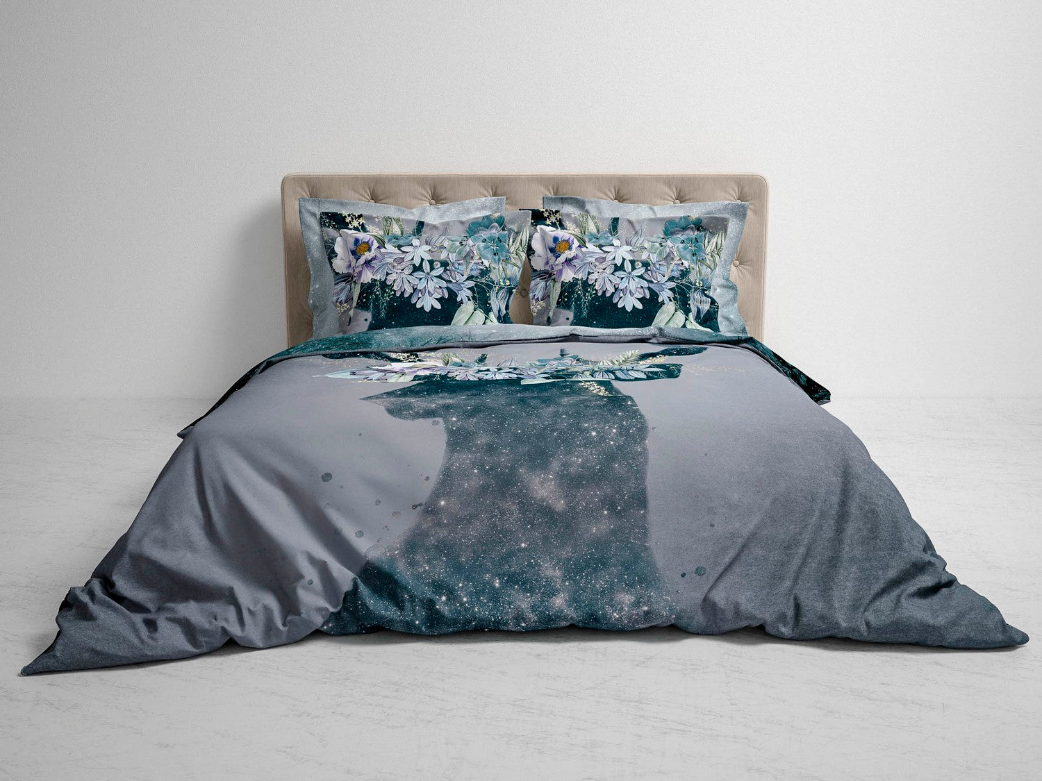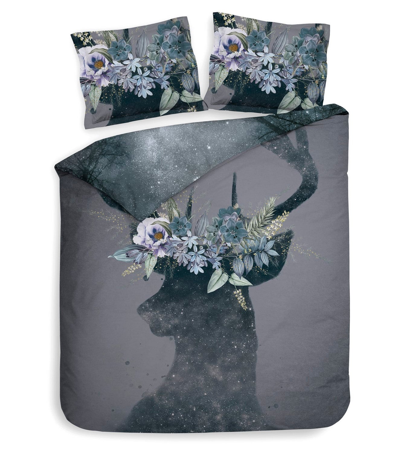 Heckett & Lane dekbedovertrek Myrthe heeft een magisch dessin. Op het overtrek staat het silhouet van een groot hert met een bloemenkrans op zijn kop. De andere kant heeft een print met donkere bomen en een hemel waarin duizenden sterren zichtbaar zijn. Gemaakt van 100% hoogwaardig katoen-satijn. Door de satijnbinding zorgt dit materiaal voor een ultiem slaapcomfort. Het materiaal is namelijk zacht, sterk, vochtabsorberend en temperatuur regulerend. Het heeft alle ideale eigenschappen voor een dekbedovertrek. Voorzien van een dubbele doorlopende instopstrook over de gehele breedte. Hierdoor ook geschikt voor extra lange dekbedden. Inclusief bijpassende kussensloop(en) met luxe Oxford-rand.