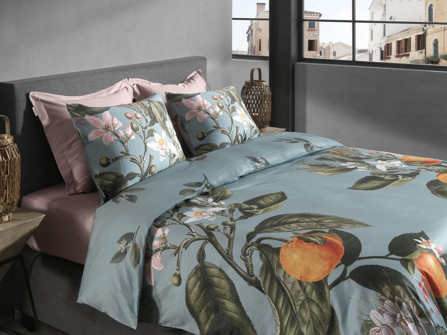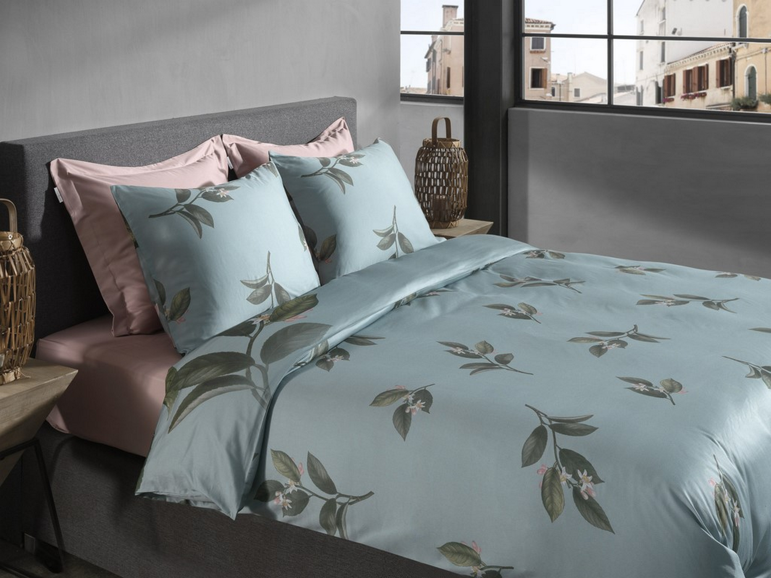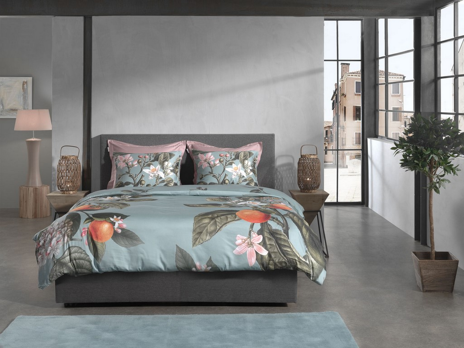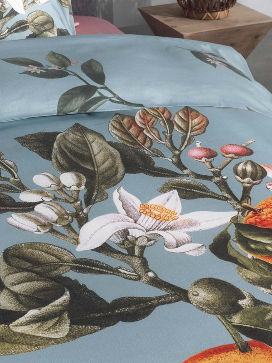Ontdek het ultieme comfort met dit luxueuze katoen satijnen Palmira dekbedovertrek uit de collectie van Heckett Lane. Deze overtrek met de prachtige blauwe kleur en vrolijke print is gemaakt van 100% katoen satijn wat niet alleen een streling voor het oog is, maar ook voor het gevoel. De combinatie van katoen en satijn zorgt voor een gladde zijdeachtige stof die heerlijk aanvoelt op de huid. Dankzij de ademende eigenschappen van katoen blijft je lichaamstemperatuur gereguleerd gedurende de nacht waardoor je kunt genieten van een diepe rustgevende slaap.