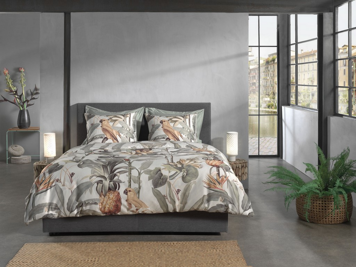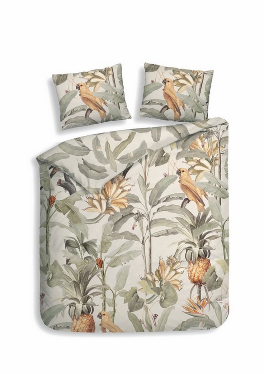 Ontdek de betoverende schoonheid van de natuur met het Pappegallo dekbedovertrek van Heckett Lane. De subtiele en toch levendige print brengt een vleugje exotische elegantie naar jouw slaapkamer. De neutrale tinten zorgen voor een rustgevende uitstraling. Het hoogwaardige katoen satijn zorgt voor een heerlijke nachtrust en een zijdezacht gevoel tegen je huid.