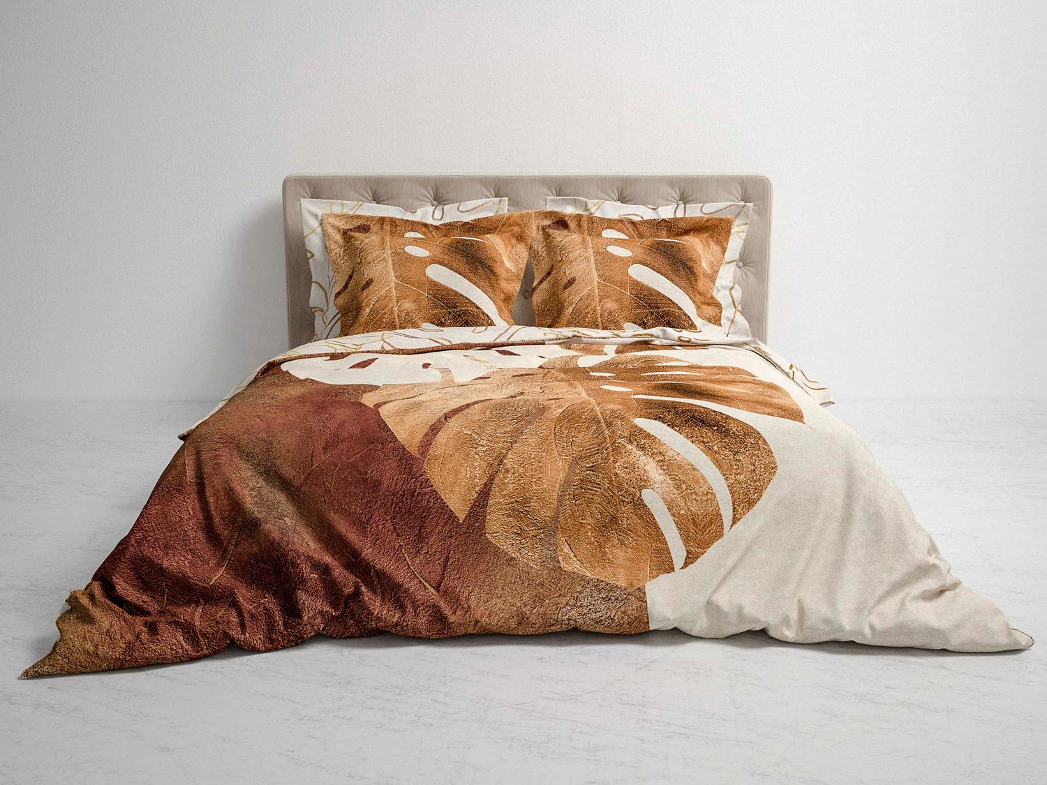 Ga voor een tropische sfeer in je slaapkamer met dit Roca dekbedovertrek. Dit Heckett & lane dekbedovertrek is dubbelzijdig, waardoor je het overtrek op meerdere manieren kunt gebruiken. Op de voorzijde zijn grote tropische bladeren afgebeeld in beige en bruine tinten. Wil je een rustigere uitstraling dan kun je de achterzijde van dit dubbelzijdige overtrek gebruiken, daar vind je namelijk de omlijningen van de bladeren op een lichte ondergrond. Dit overtrek heeft voor ieder wat wils. Het Roca dekbedovertrek wordt geleverd met bijpassende kussenslopen die voorzien zijn van een Oxford-rand. De dubbele instopstrook over de gehele breedte maakt het overtrek ook geschikt voor extra lange dekbedden. Dit fraaie overtrek is gemaakt van 100% katoen-satijn, waardoor het heerlijk koel aan voelt in de zomer en lekker warm in de winter. Katoen-satijn voelt heerlijk zacht aan en is ademend en vocht absorberend. Door de satijn binding krijgt het overtrek zijn subtiele glans en komen de kleuren nog beter uit. Dit overtrek is niet alleen mooi, maar heeft ook nog eens het GOTS (Global Organic Textile Standard) keurmerk.
