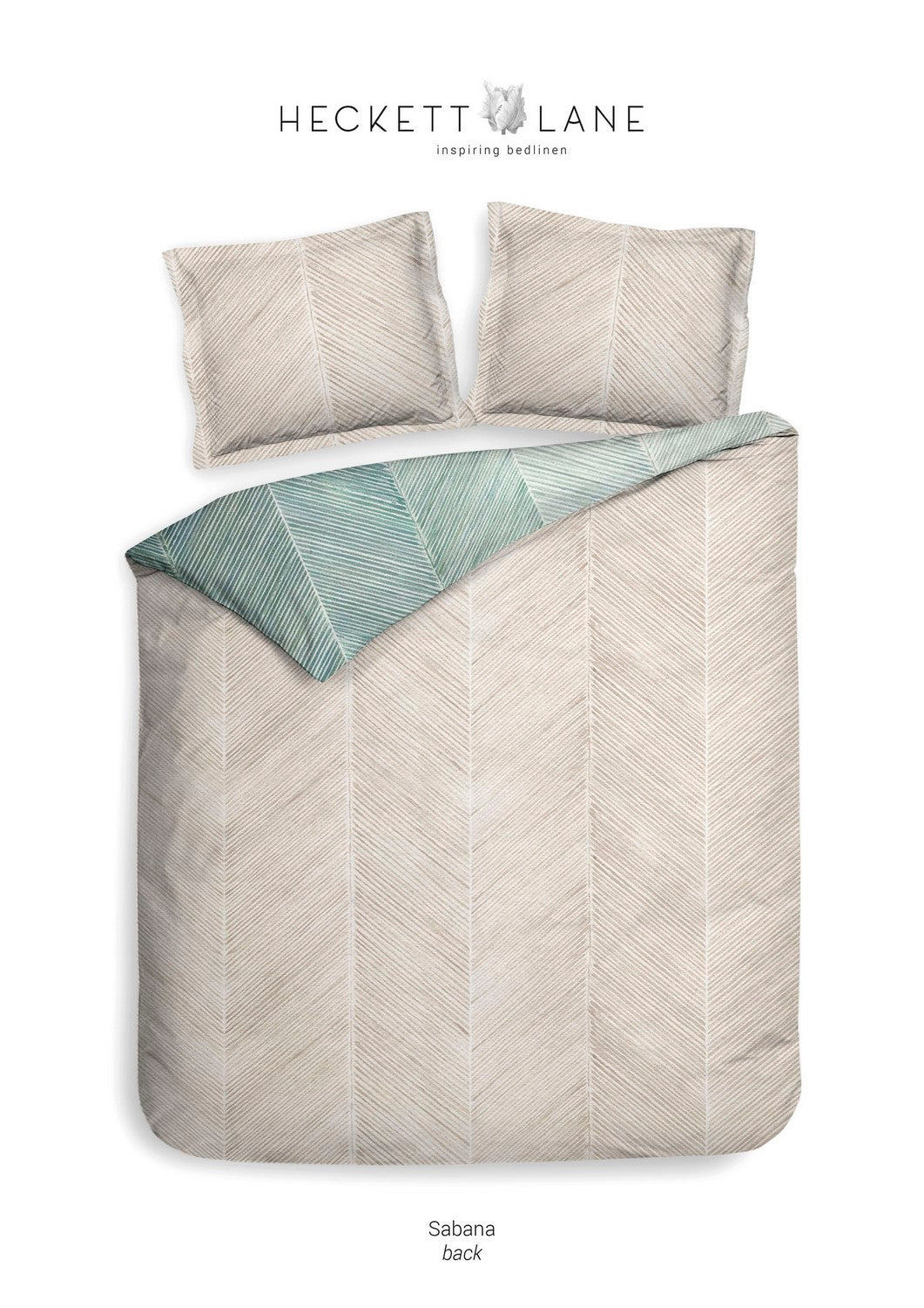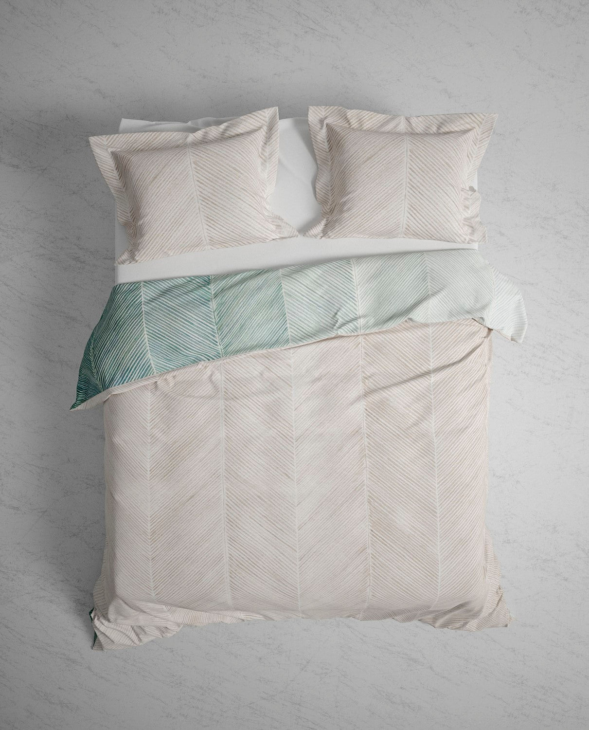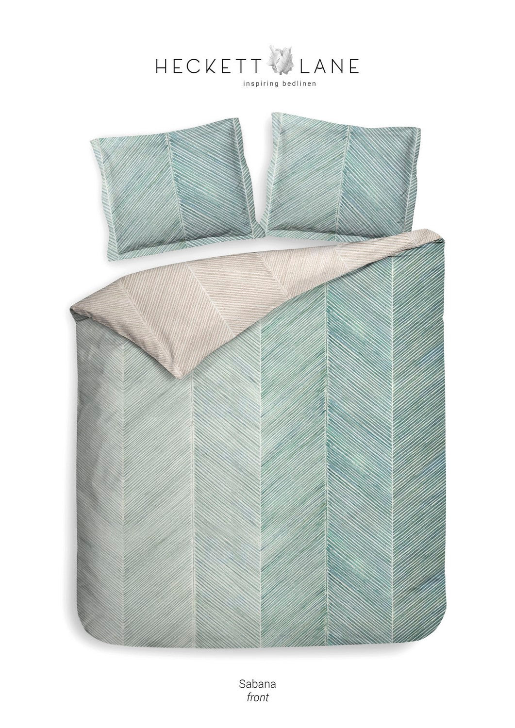 Dit prachtige dubbelzijdige dekbedovertrek luistert naar de naam Ramon en is van het merk Heckett & Lane. Aan de voorzijde loopt het verfijnde visgraatpatroon van een licht groene kleur over naar een donkere groen/blauwe kleur. Op de achterzijde is dezelfde grafische print te zien, maar dan in wit en beige. Beide zijden zijn zo mooi, dat het bijna zonde is om maar een kant te laten zien. De bijpassende kussenslopen zijn voorzien van dezelfde print en zijn afgewerkt met een Oxford-rand. Daarnaast is het overtrek voorzijn van een dubbele instopstrook, waardoor het ook geschikt is voor extra lange dekbedden. Dit dekbedovertrek ziet er niet alleen mooi uit, maar is ook nog eens gemaakt van 100% katoen-satijn. Dit materiaal voelt heerlijk zacht aan en is ademend en vocht absorberend. Door de satijn binding krijgt het overtrek zijn subtiele glans en komt de print nog beter uit. Daarnaast heeft dit dekbedovertrek ook nog het GOTS (Global Organic Textile Standard) keurmerk.