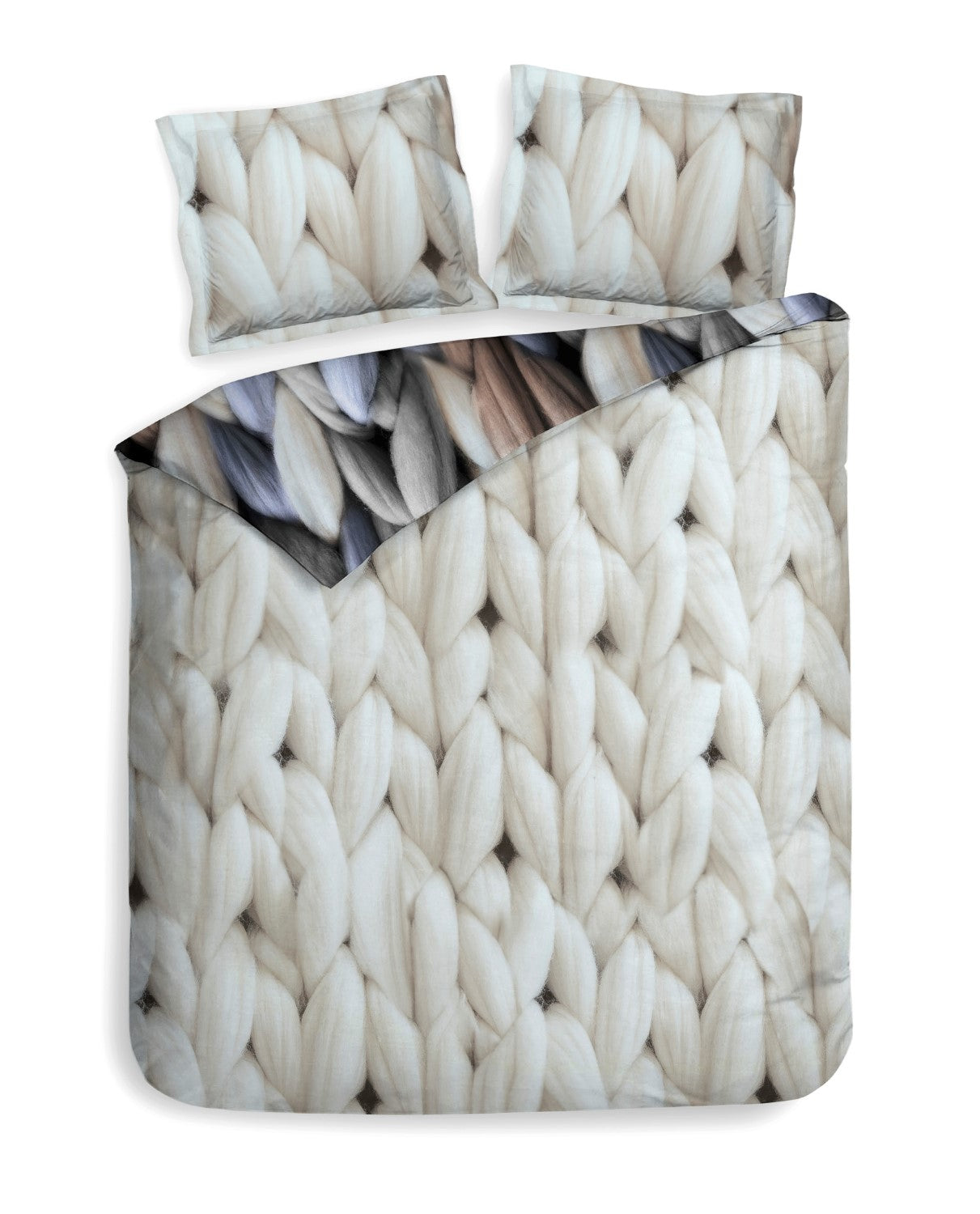 Wissel af tussen een gebroken witte en multi-kleurige dessin van gevlochten wol. Beide kanten van het dubbelzijdige dekbedovertrek genaamd Alaya zijn een aanwinst voor je slaapkamer. Dit dekbedovertrek is gemaakt van 100% katoen-twill, wat heerlijk zacht, ademend en ventilerend is.