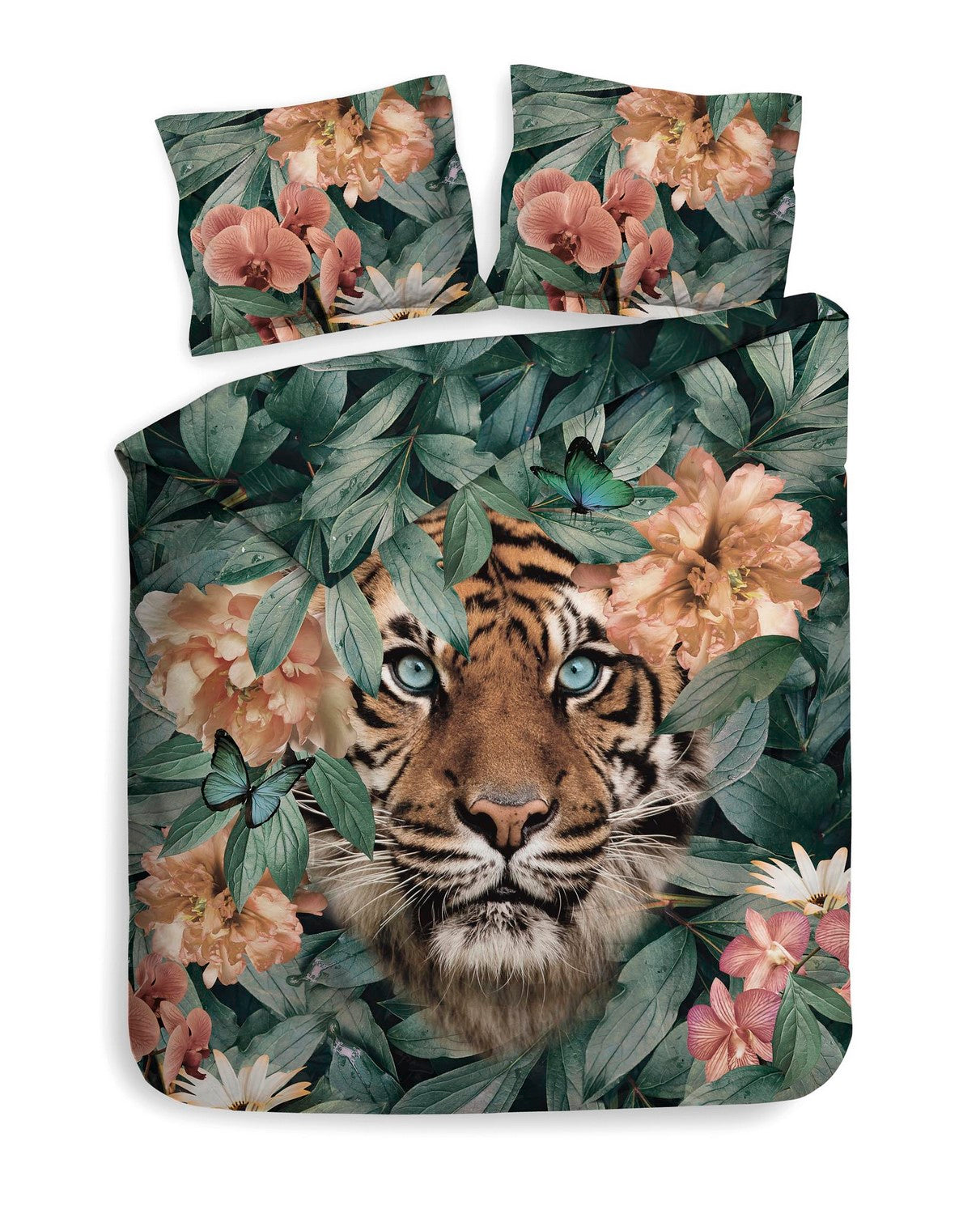 Haal de natuur in huis met dit Lionel dekbedovertrek van Heckett & Lane. Op dit opvallende overtrek zie je een prachtige tijger omringd door groene bladeren en oranje oze bloemen. Wil je liever een wat rustigere uitstraling dan kun je de achterkant van dit dubbelzijdige overtrek gebruiken, daar zijn namelijk alleen de groene bladeren op afgebeeld. Dit mooie overtrek heeft dus voor ieder wat wils. Het dekbedovertrek wordt geleverd met bijpassende kussenslopen, die voorzijn zijn van een Oxford-rand. De dubbele instopstrook over de gehele breedte maakt het overtrek ook geschikt voor extra lange dekbedden. Het Lionel overtrek is gemaakt van 100% Twill katoen en heeft het GOTS (Global Organic Textile Standard) keurmerk. Door de twill-binding voor het overtrek extra zacht en sterk aan. Deze speciale weeftechniek is te herkennen aan zijn diagonale patroon. Ga voor comfortabel en luxe met dit heerlijke overtrek.