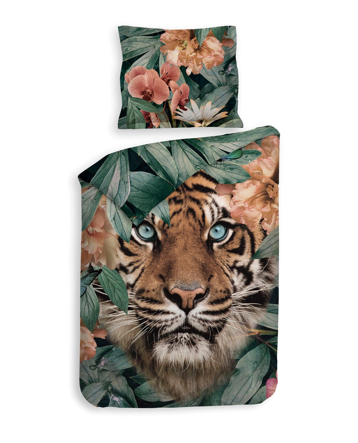 Haal de natuur in huis met dit Lionel dekbedovertrek van Heckett & Lane. Op dit opvallende overtrek zie je een prachtige tijger omringd door groene bladeren en oranje oze bloemen. Wil je liever een wat rustigere uitstraling dan kun je de achterkant van dit dubbelzijdige overtrek gebruiken, daar zijn namelijk alleen de groene bladeren op afgebeeld. Dit mooie overtrek heeft dus voor ieder wat wils. Het dekbedovertrek wordt geleverd met bijpassende kussenslopen, die voorzijn zijn van een Oxford-rand. De dubbele instopstrook over de gehele breedte maakt het overtrek ook geschikt voor extra lange dekbedden. Het Lionel overtrek is gemaakt van 100% Twill katoen en heeft het GOTS (Global Organic Textile Standard) keurmerk. Door de twill-binding voor het overtrek extra zacht en sterk aan. Deze speciale weeftechniek is te herkennen aan zijn diagonale patroon. Ga voor comfortabel en luxe met dit heerlijke overtrek.