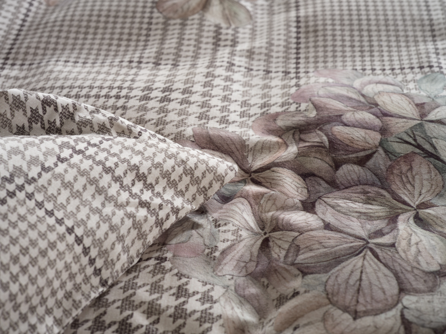 - Design: Bloemenpatroon op een subtiel ruitdesign, aangebracht op een rustige beige achtergrond, voor een klassieke en elegante look
