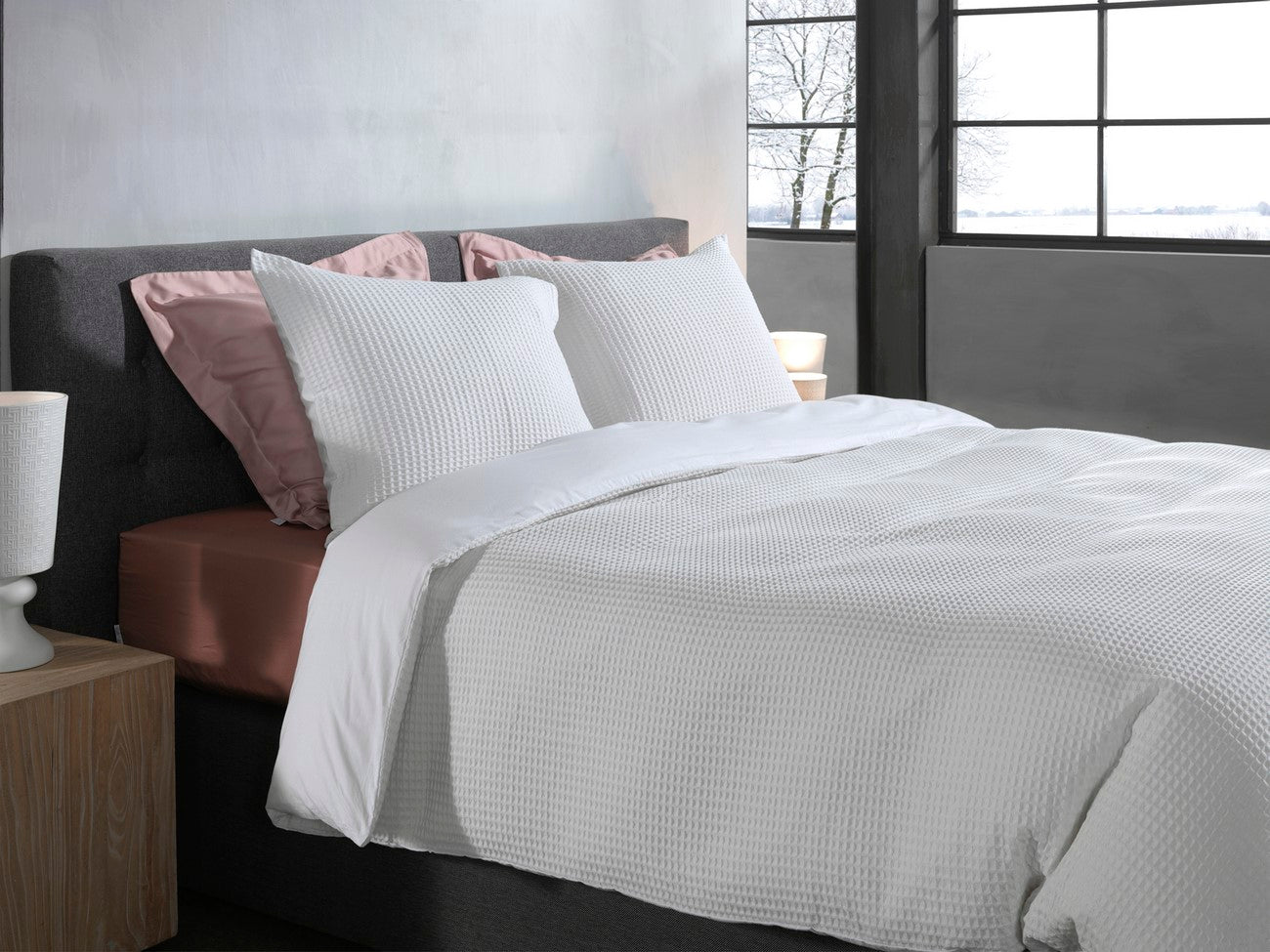 Ga voor een stijlvolle en luxe uitstraling met het Vafala dekbedovertrek van Heckett & Lane. Het overtrek is voorzien van een klassiek wafelpatroon aan de voorzijde. De achterzijde van het overtrek is egaal en heeft een effen kleur. Hierdoor kun je overtrek ook dubbelzijdig gebruiken en kies je elke keer weer voor een andere uitstraling.