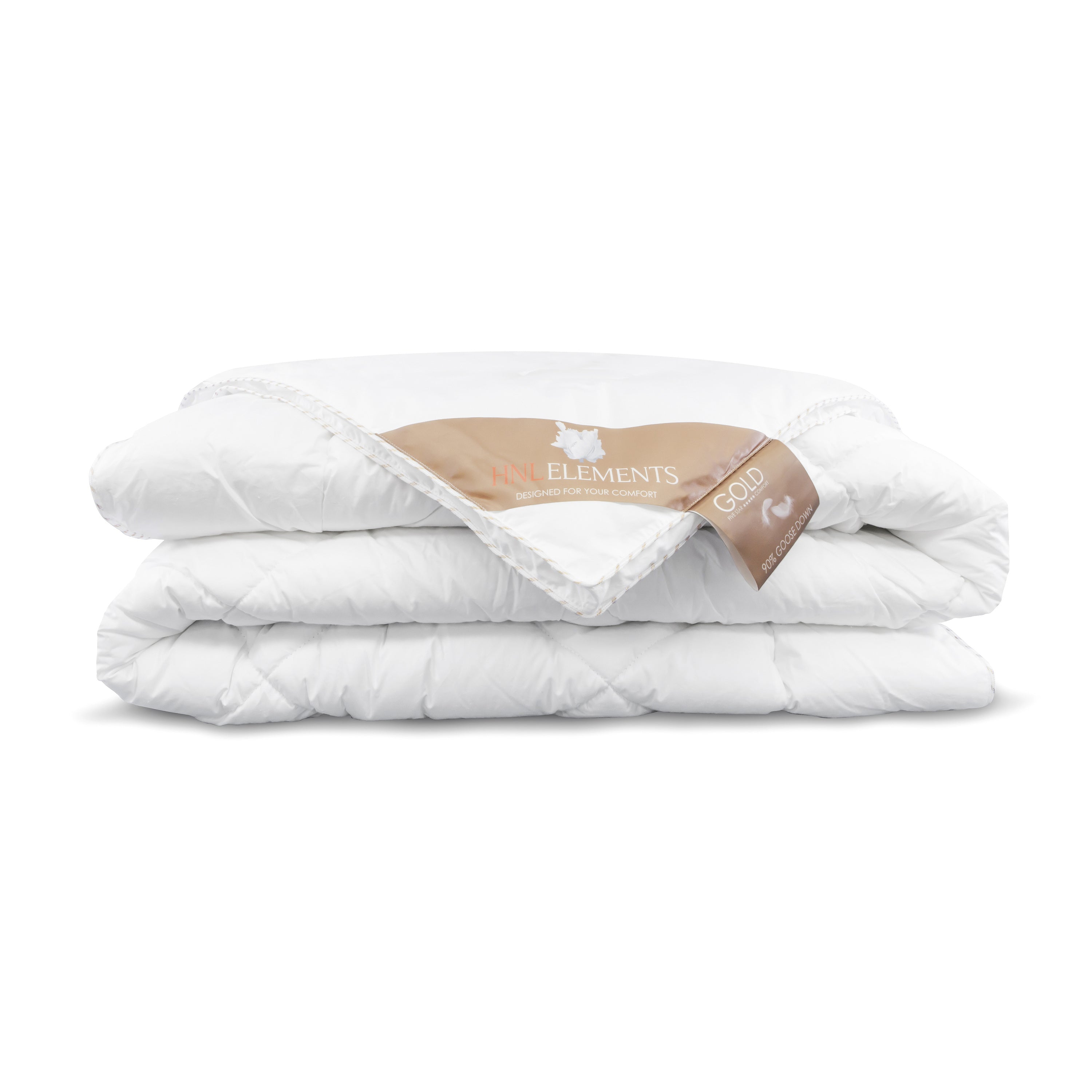 Waarom dan ganzendons? De donsvlokken die ganzen produceren zijn groter dan die van eenden. Daardoor is er minder vulling nodig voor dezelfde isolatie, wat zorgt voor een lichter dekbed en dát creëert weer extra slaapcomfort. Het Gold dekbed heeft een vulling van 90% ganzendons en 10% ganzenveertjes en zal lichter aanvoelen dan dekbedden met eenzelfde percentage eendendons.