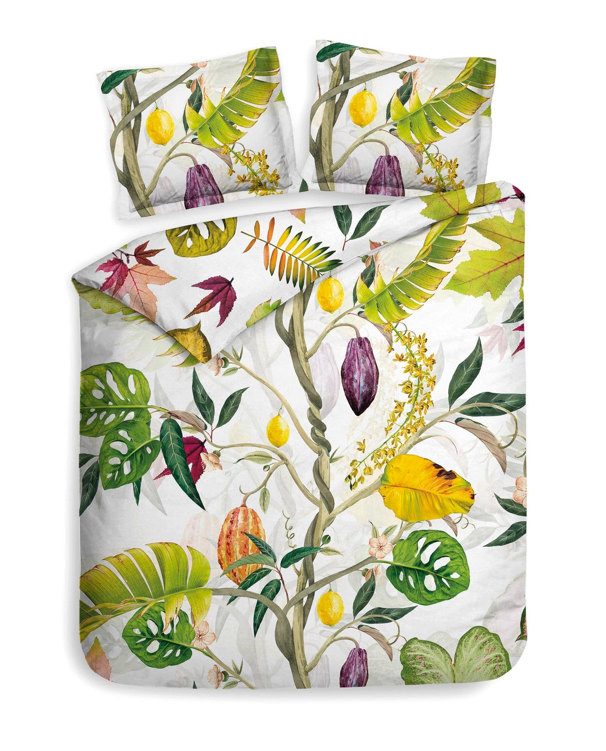 Waan je in de natuur met dit kleurrijke Sillia dekbedovertrek van Heckett & lane. Het overtrek heeft een witte ondergrond die versierd is met groene, gele en paarse bladeren die samen een mooi geheel vormen. Het dekbedovertrek is dubbelzijdig aan beiden kanten is dit tropische dessin zichtbaar, maar dan net even anders. Het overtrek wordt geleverd met bijpassende kussenslopen, deze zijn voorzien van een Oxford-rand. De dubbele instopstrook over de gehele breedte maakt het dekbedovertrek ook geschikt voor extra lange dekbedden. Dit dekbedovertrek is gemaakt van 100% katoen- satijn en heeft het GOTS (Global Organic Textile Standard) keurmerk. Door de hoogwaardige kwaliteit voelt het overtrek heerlijk zacht en comfortabel aan en is het goed ademend. Door de satijnbinding krijgt het dekbedovertrek zijn subtiele glans. Ga voor optimaal slaapcomfort en droomweg met dit heerlijke dekbedovertrek.