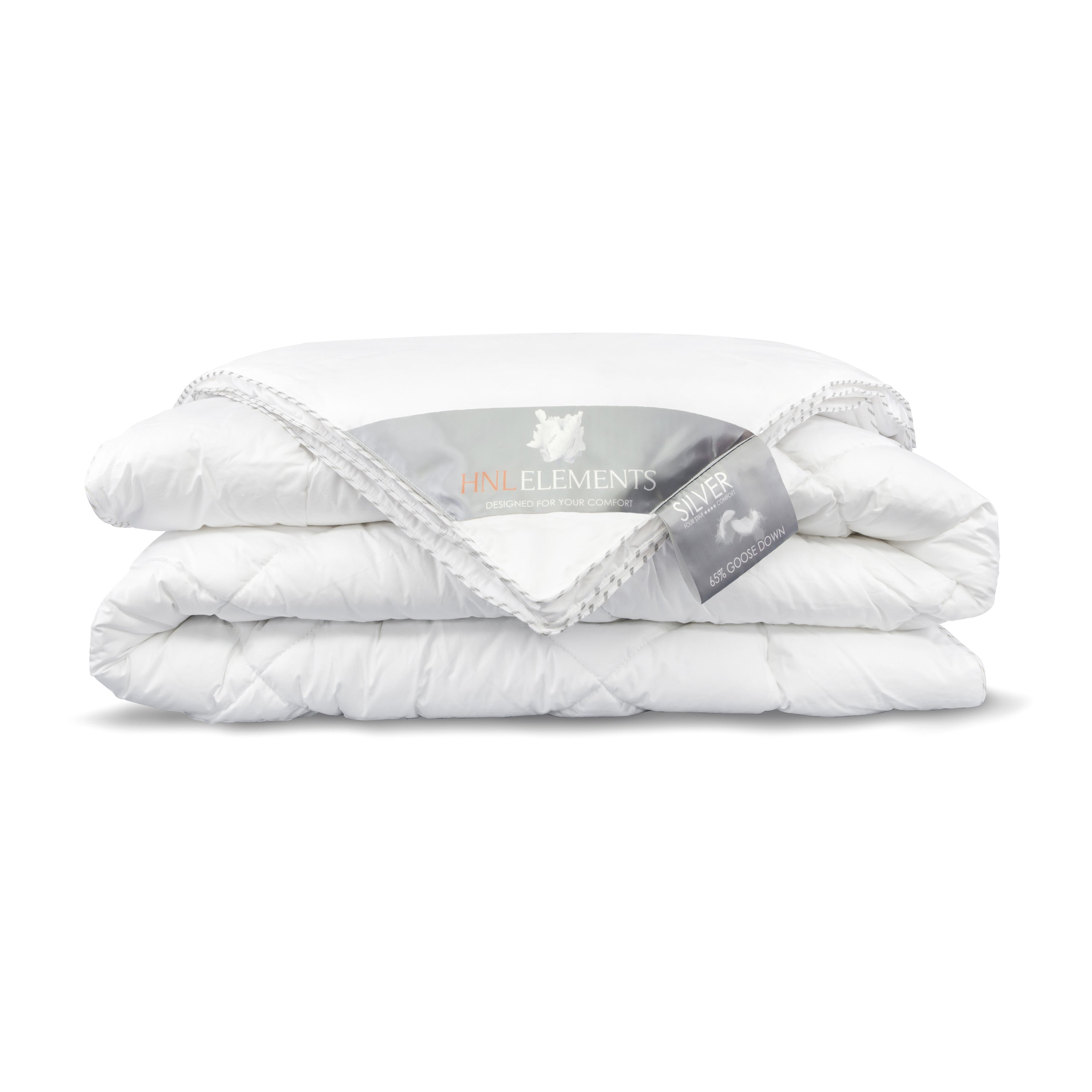 Waarom dan ganzendons? De donsvlokken die ganzen produceren zijn groter dan die van eenden. Daardoor is er minder vulling nodig voor dezelfde isolatie, wat zorgt voor een lichter dekbed en dát creëert weer extra slaapcomfort. Het Silver dekbed heeft een vulling van 65% ganzendons en 35% ganzenveertjes en zal lichter aanvoelen dan dekbedden met eenzelfde percentage eendendons.
