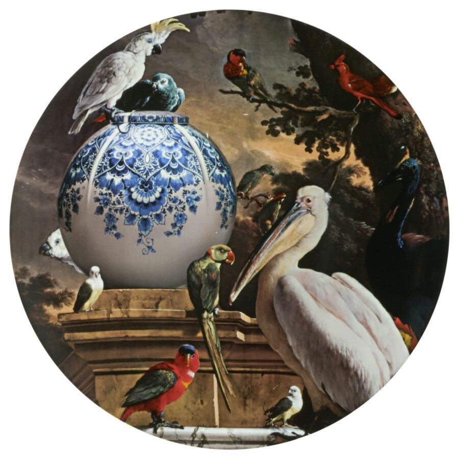 Heinen Delfts Blauw | Wandbord Pelikaan | H 3,5 cm, Ø 42 cm