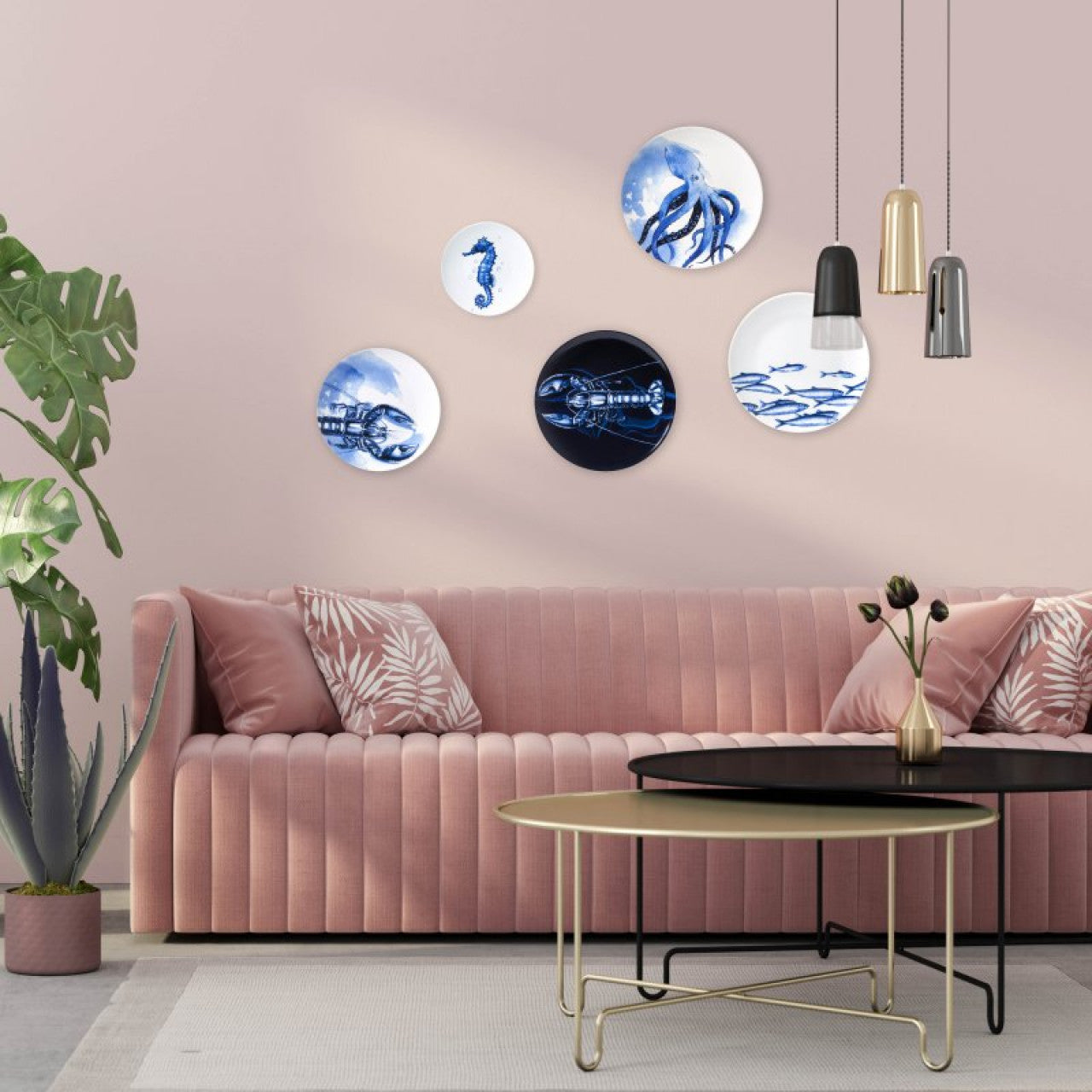 Heinen Delfts Blauw | Wandborden mix 4 zeedieren - set - 3 stuks