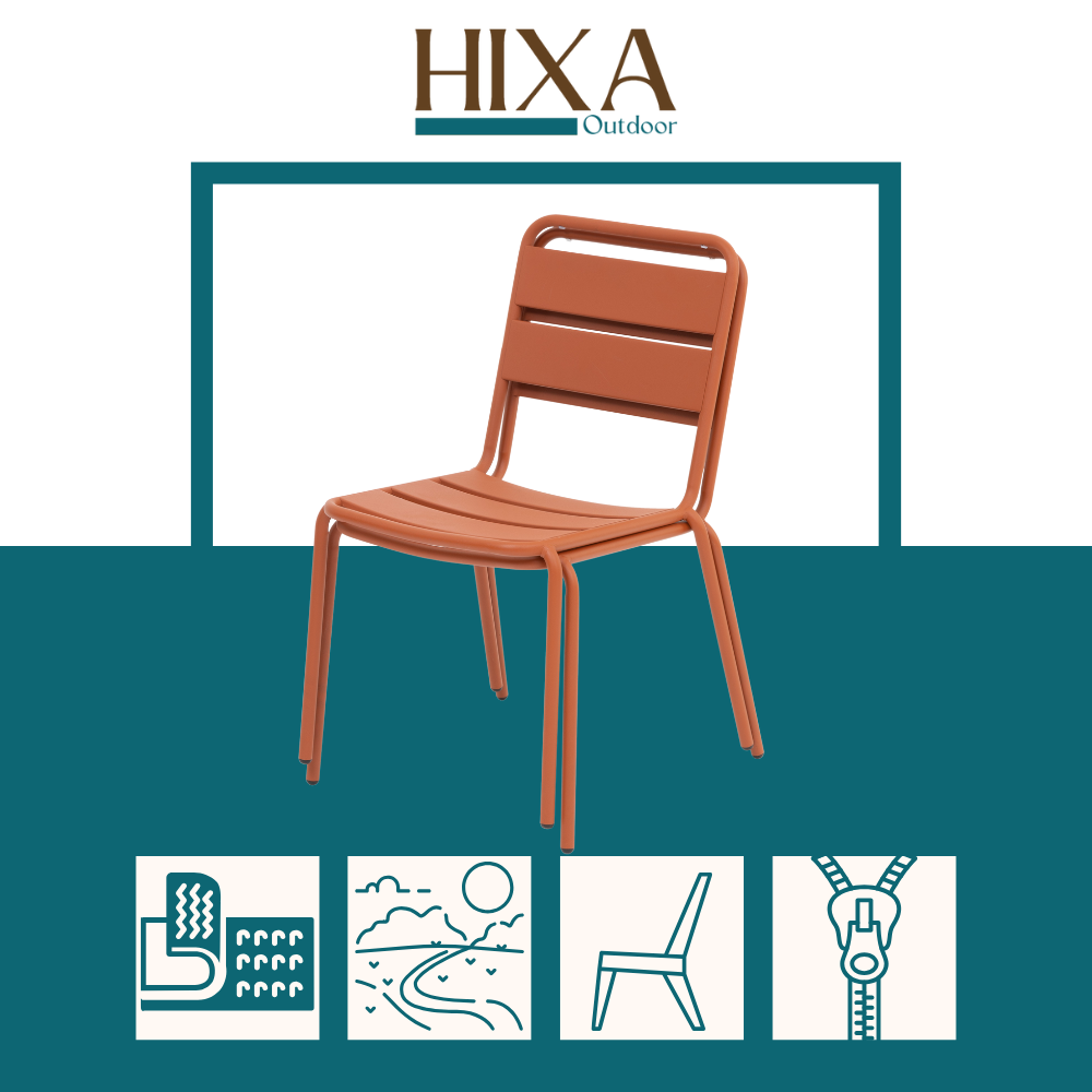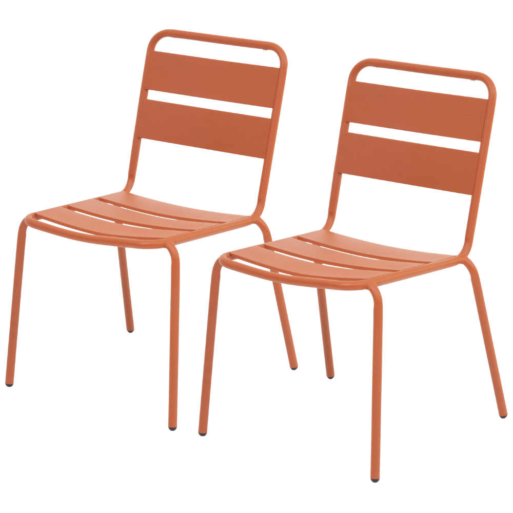 Breng een vleugje warmte en modern design naar je tuin of terras met de HESPERIDE HIXA PHUKET Tuinstoelen. Deze set van 2 stijlvolle eetstoelen is perfect voor gezellige diners in de buitenlucht en combineert een robuuste constructie met een eigentijdse uitstraling. De stoelen zijn gemaakt van stevig staal en hebben een prachtige amber oranje afwerking, wat zorgt voor een frisse en uitnodigende sfeer.