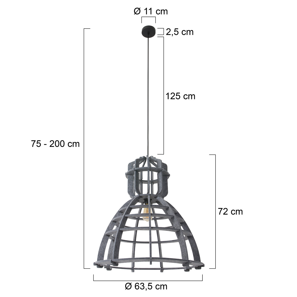 Deze lamp wordt geleverd met 1,5 meter zwarte snoer.