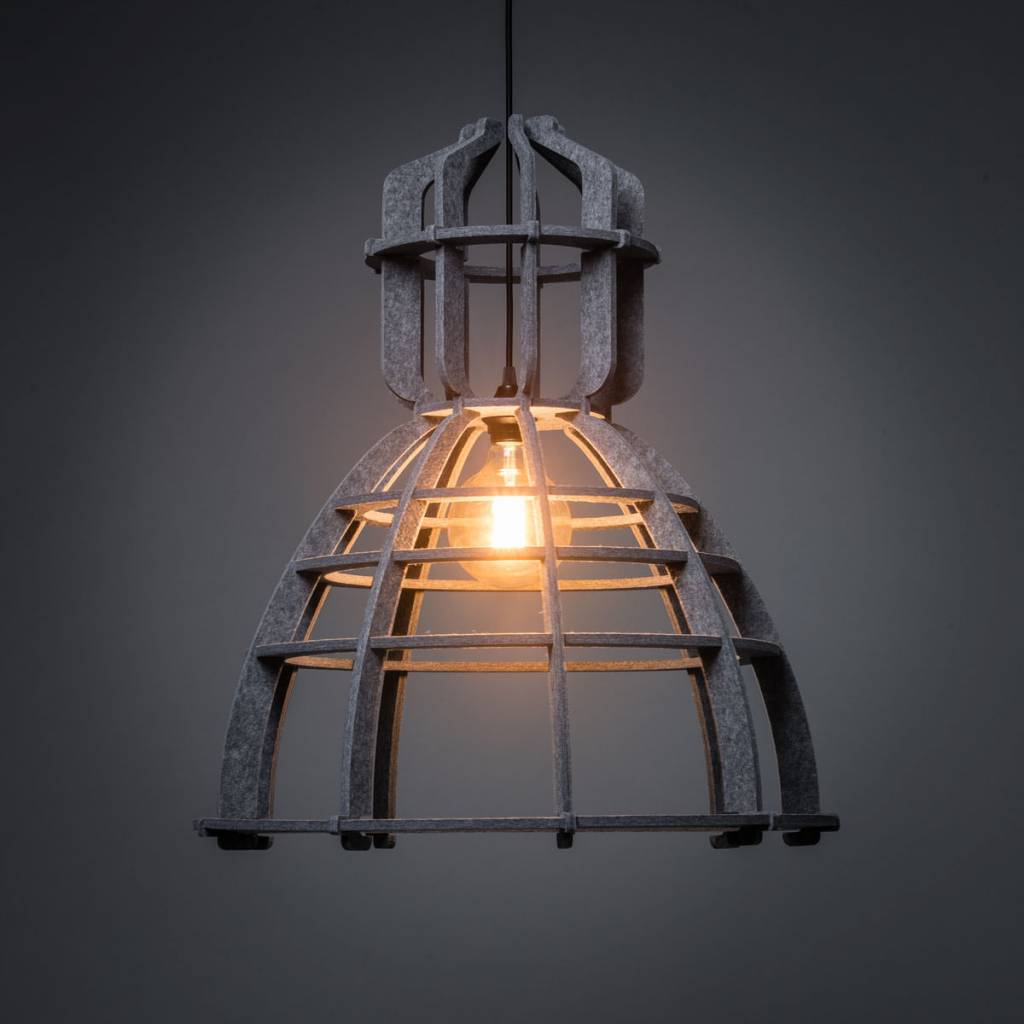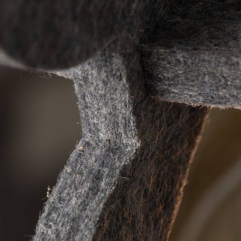 Deze stoere lamp is gemaakt van PET vilt. Dit materiaal wordt gemaakt van gerecycled plastic. Het heeft een warme en vilten uitstraling en staat daardoor perfect in een interieur met veel gladde materialen.