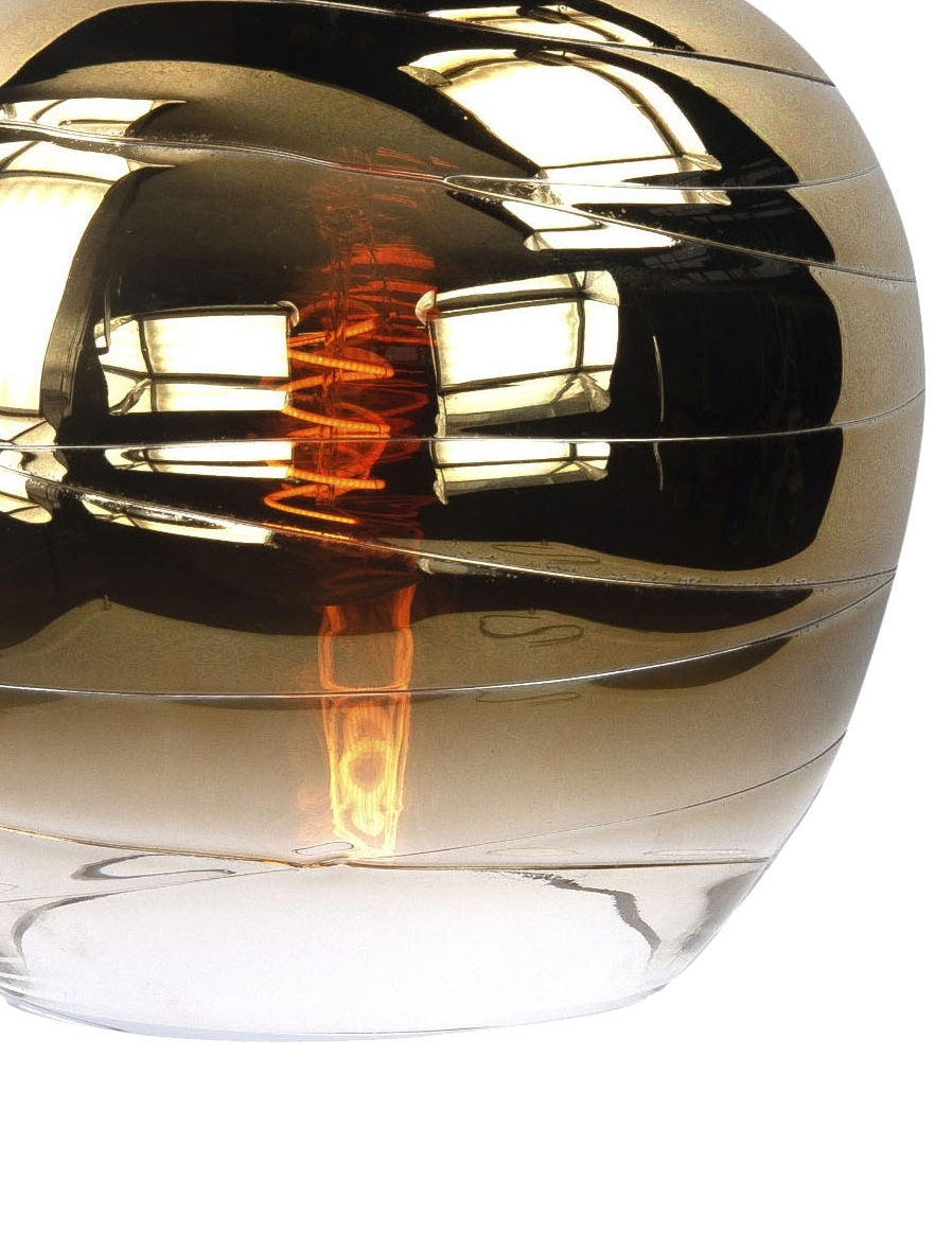 Deze leuke glazen plafondlamp heeft een prachtig afgewerkt goud glas die is bevestigd aan een mat zwarte plafondhouder. Het glas is 21 centimeter doorsnee en hierdoor op vele plekken in huis toepasbaar.