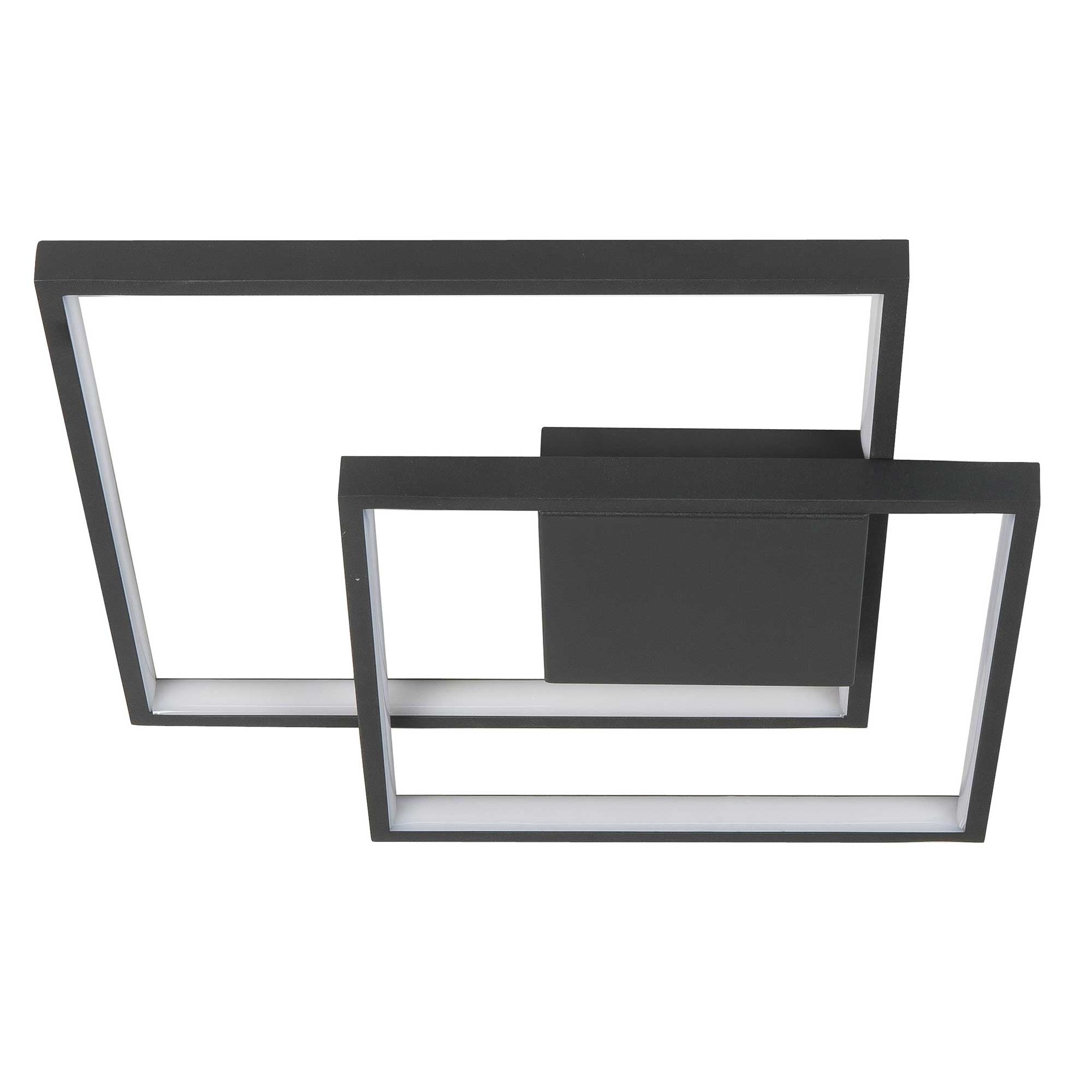 Bij deze leuke grote plafond LED lamp zijn er 2 vierkanten profielen om de plafond bak heen gemonteerd. Het licht wordt naar de binnen kant verplaatst waarnaar het uitgestraald wordt naar de ruimte eronder. Dit armatuur van leverancier Highlight verbruikt 40 watt en geeft 3500 Lumen aan mooi warm wit licht (2700 Kelvin). De lengte en de breedte van dit armatuur is 42 cm en de hoogte is 6 cm. Kleur: mat-zwart gespoten metaal.