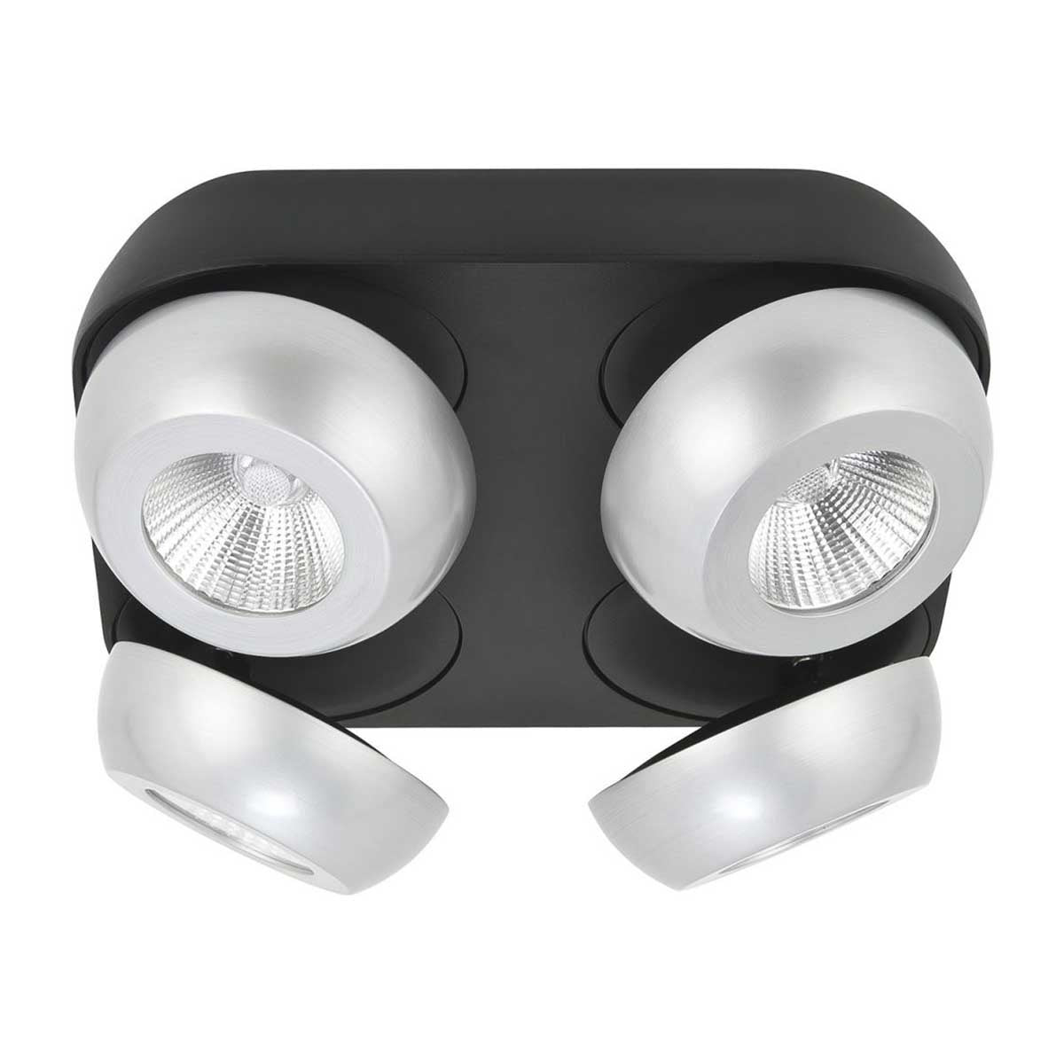 Uiteraard is deze LED spot volledig dimbaar met een Tronic dimmer (excl). De kleur van deze metalen spot is mat-zwart in combinatie met aluminium en de LED geeft een warme licht kleur (2700 Kelvin). Deze vierkante 4 lichts Doblo spot is 25 cm breed, 25 cm lang en heeft een hoogte van 9 cm.