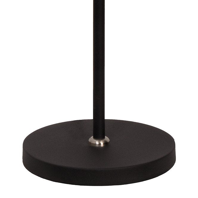 De hoogte is te stellen van 144 -180 cm, de kap heeft een diameter van 18 cm en de lengte van de kap is 45 cm. De kleur van de lamp is zwart i.c.m mat-chroom.