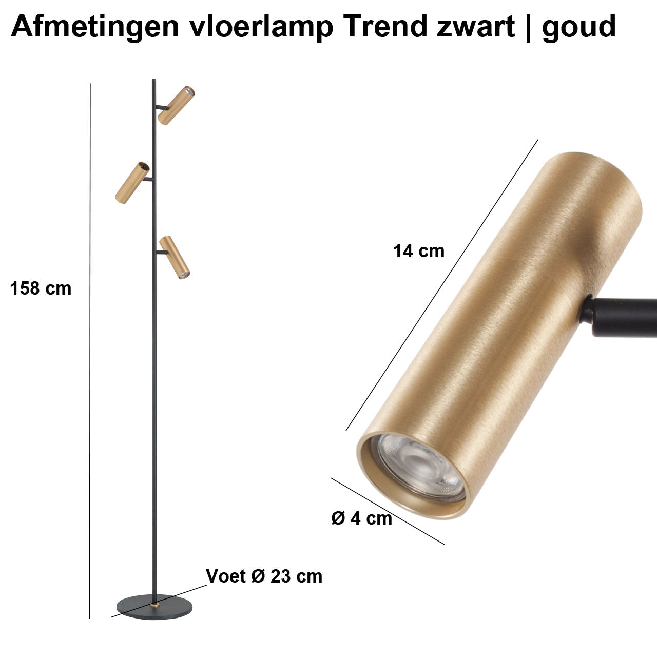 Highlight Vloerlamp Trend Zwart| Goud 3 lichts 158cm mini GU10