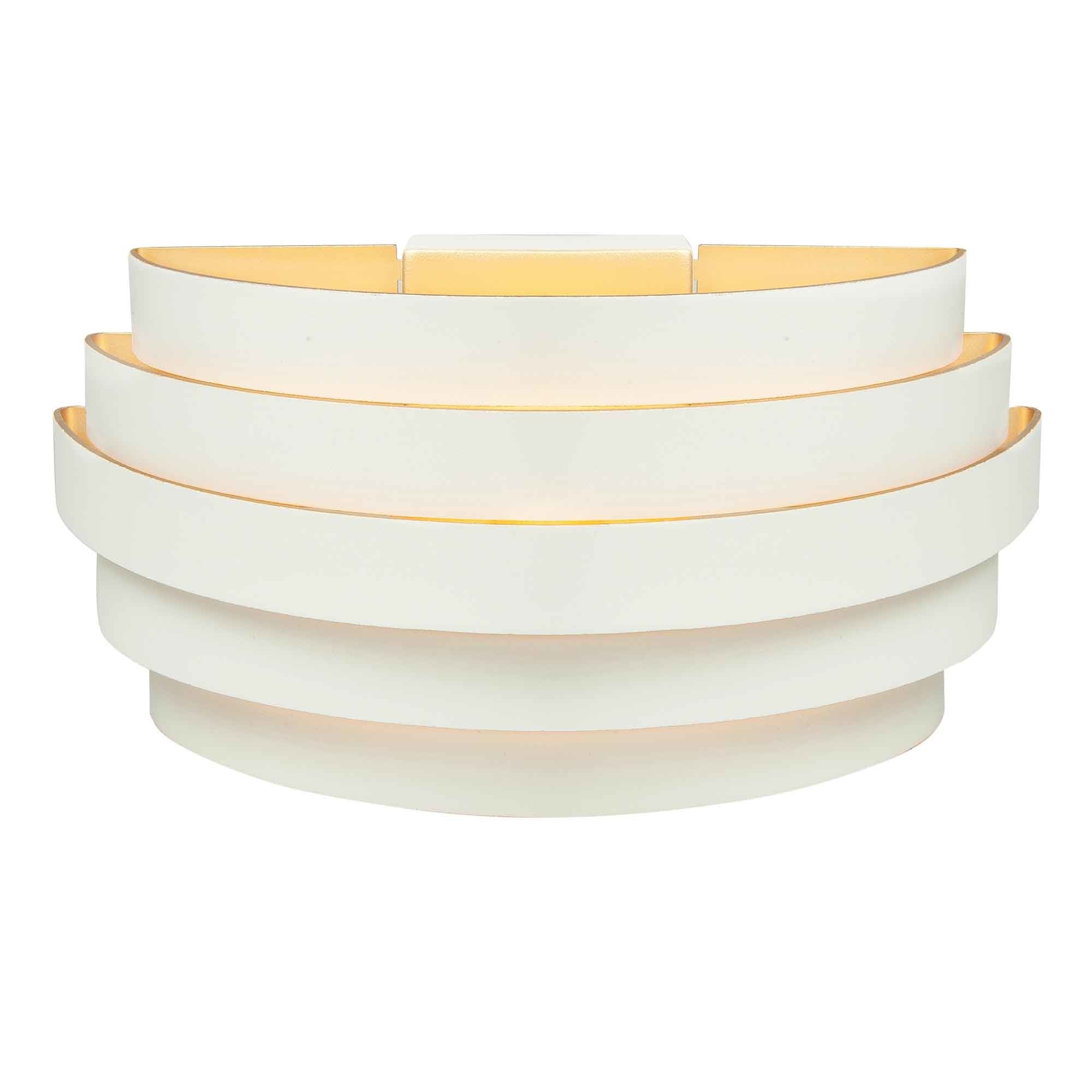 Deze wandlamp van Highlight is geschikt voor een G9 lamp van maximaal 33 Watt (exclusief). De totale hoogte is 12,5 cm, de breedte is 25 cm en de diepte is 12,5 cm. Kleur: Wit met een goud kleurige binnen kant.